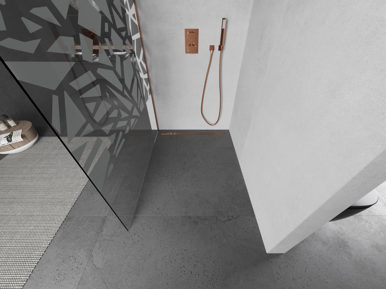 Mexen Kioto ścianka prysznicowa Walk-in 130 x 200 cm, biały wzór 8 mm, miedź szczotkowana - 800-130-101-65-85