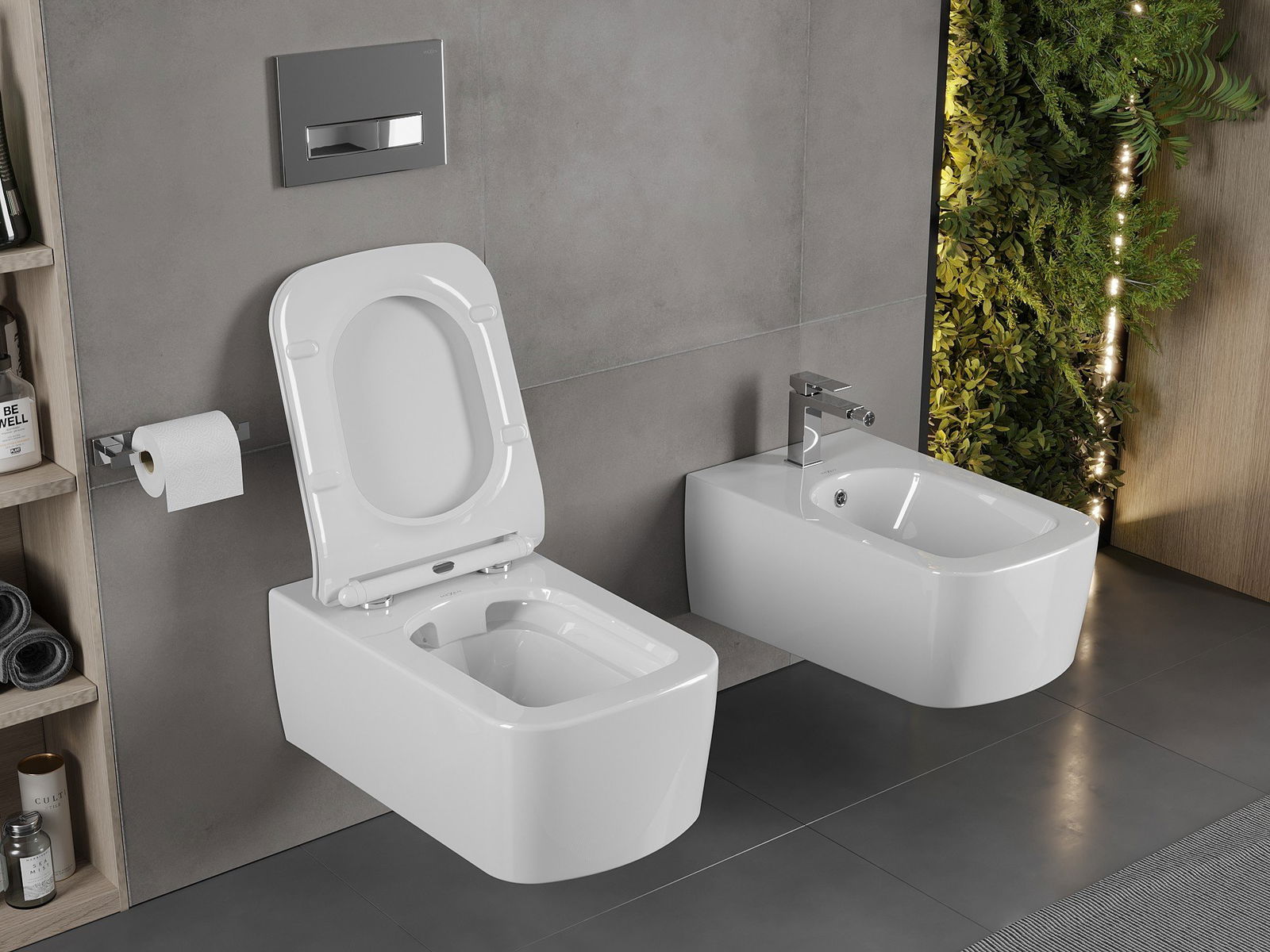 Cienka deska o wyjątkowo ergonomicznym kształcie i niezwykle smukłym wyglądzie. Konstrukcja idealnie dopasowuje się do nowoczesnego wnętrza łazienki, dając wrażenie lekkości. Doskonały wybór do minimalistycznych aranżacji.