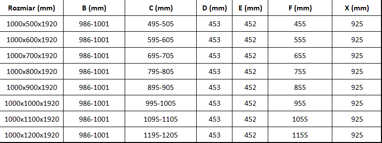 Rozmiar: 100x100 cm (drzwi 100 cm, ścianka 100 cm)