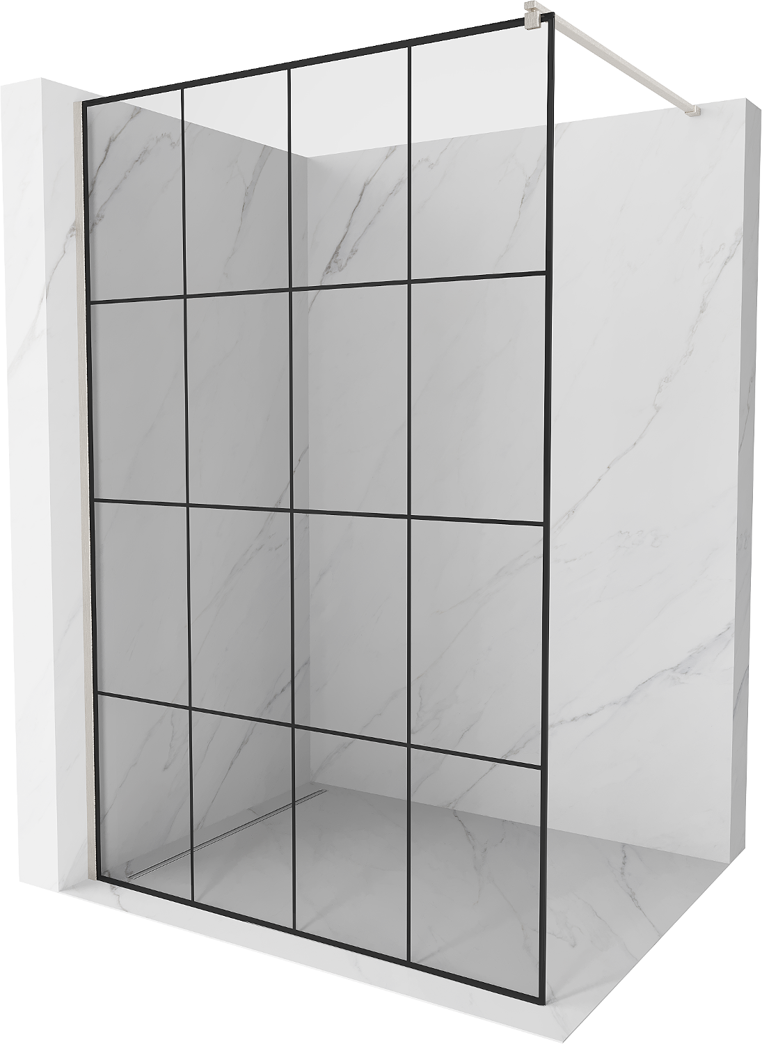 Mexen Kioto ścianka prysznicowa Walk-in 140 x 200 cm, czarna kratka 8 mm, nikiel szczotkowany - 800-140-101-97-77