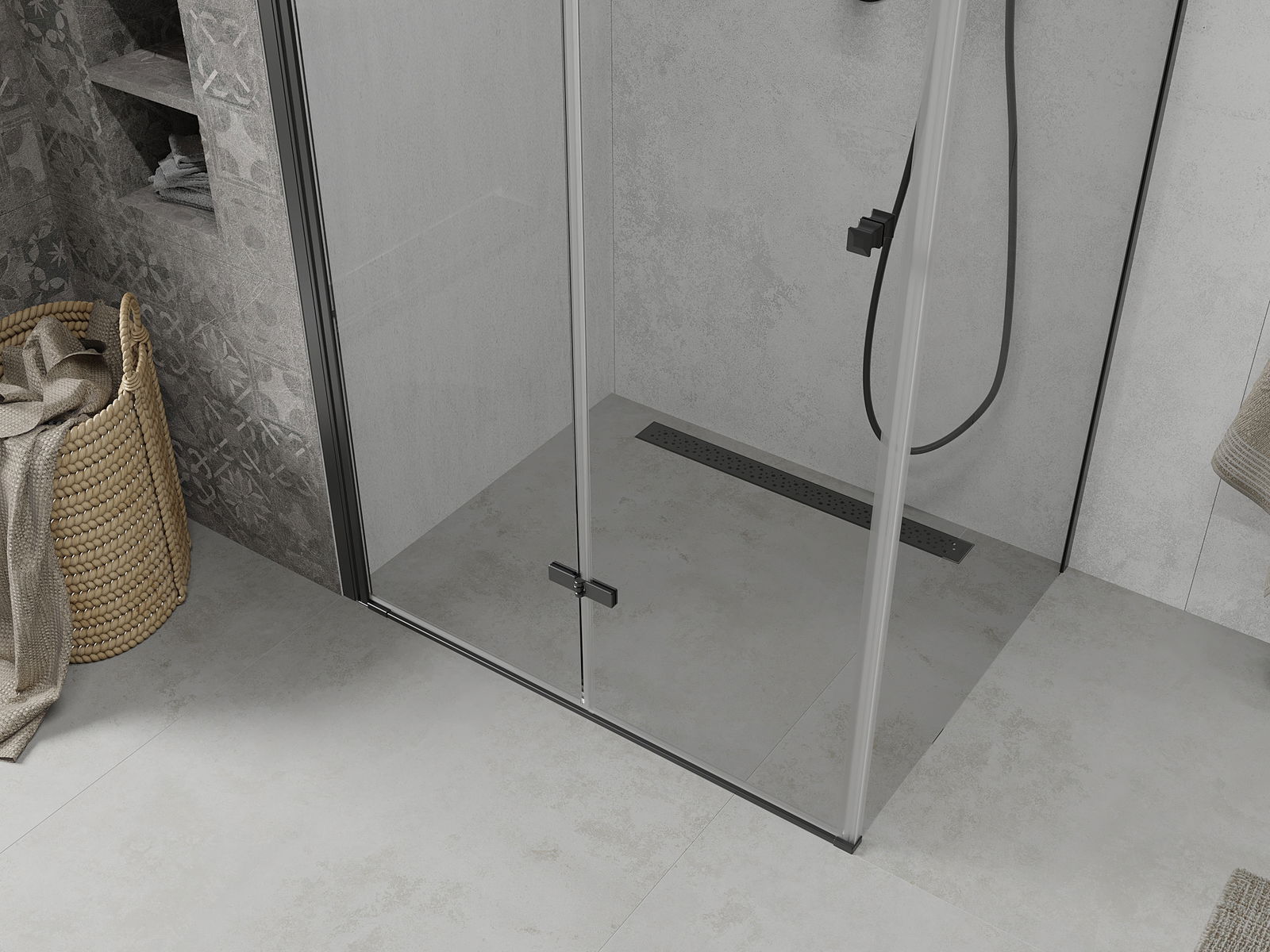 Możliwość składania drzwi, zarówno do zewnątrz, jak i do wewnątrz, pozwala uzyskać więcej przestrzeni podczas niekorzystania z prysznica. Jest to idealne rozwiązanie do mniejszych łazienek, maksymalnie wykorzystujące dostępną powierzchnię.