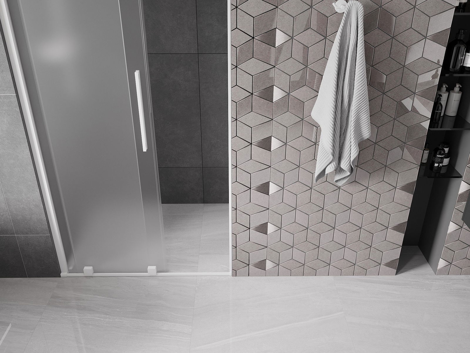 Poręczny i wygodny uchwyt został wykonany ze stali nierdzewnej. Modny kształt w połączeniu z wykończeniem dopasowanym do koloru profili nadaje całości nowoczesnego i stylowego wyglądu, podkreślając estetykę każdej łazienki.