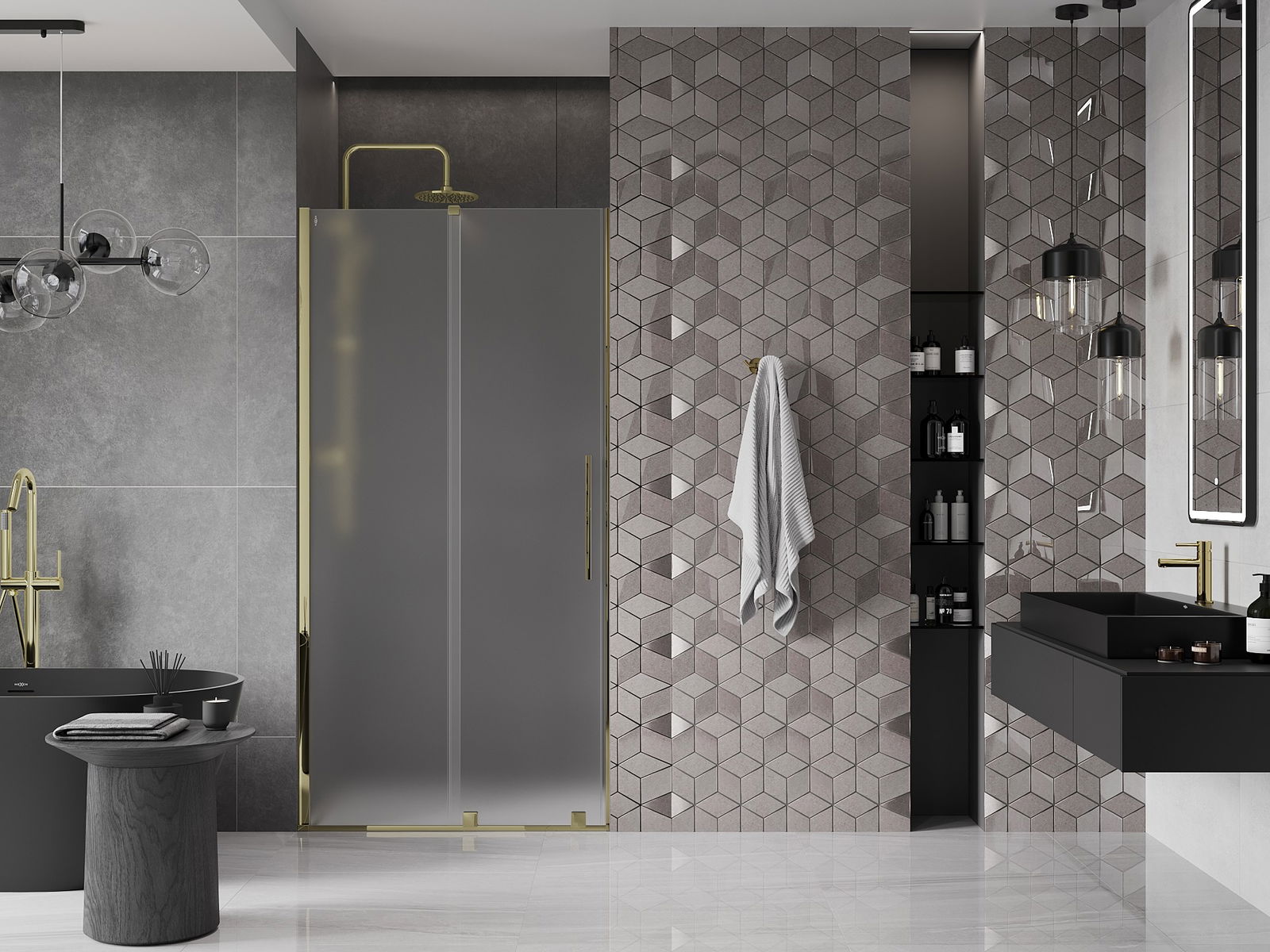 Mexen Velar drzwi prysznicowe rozsuwane 90 cm, szron, złote - 871-090-000-31-50