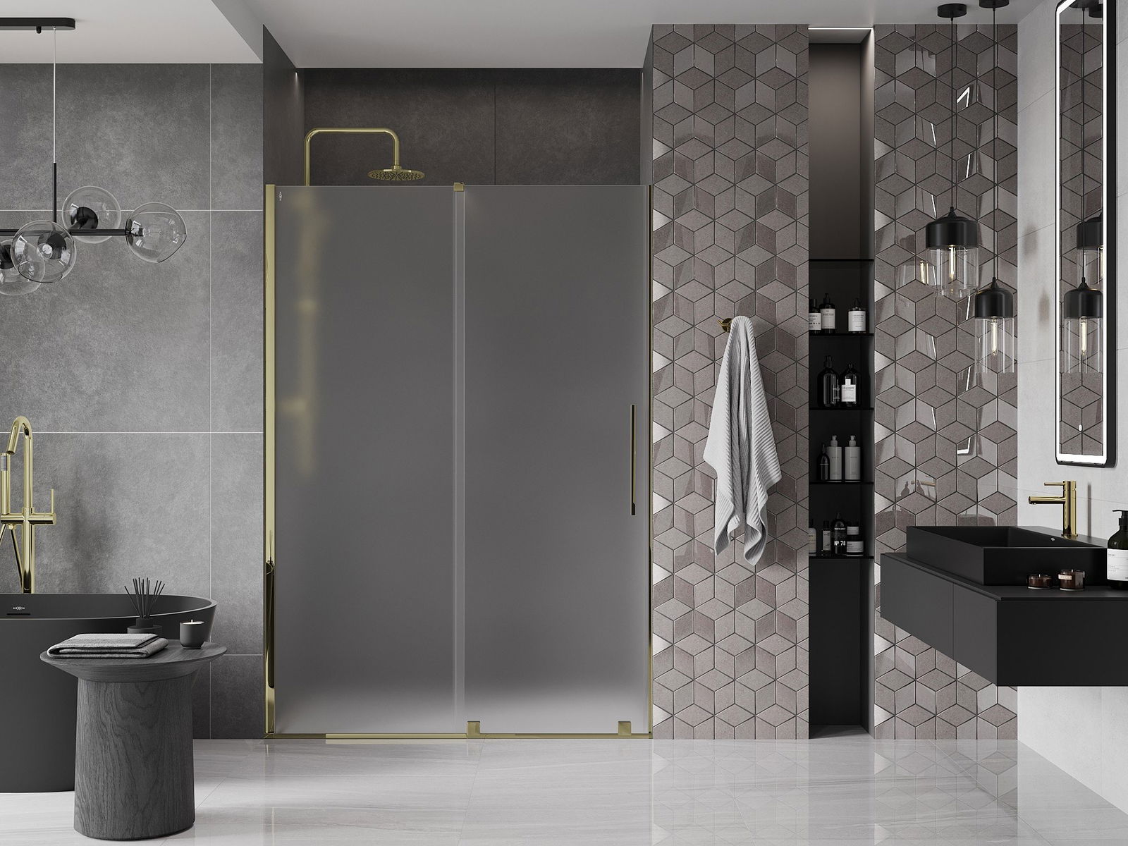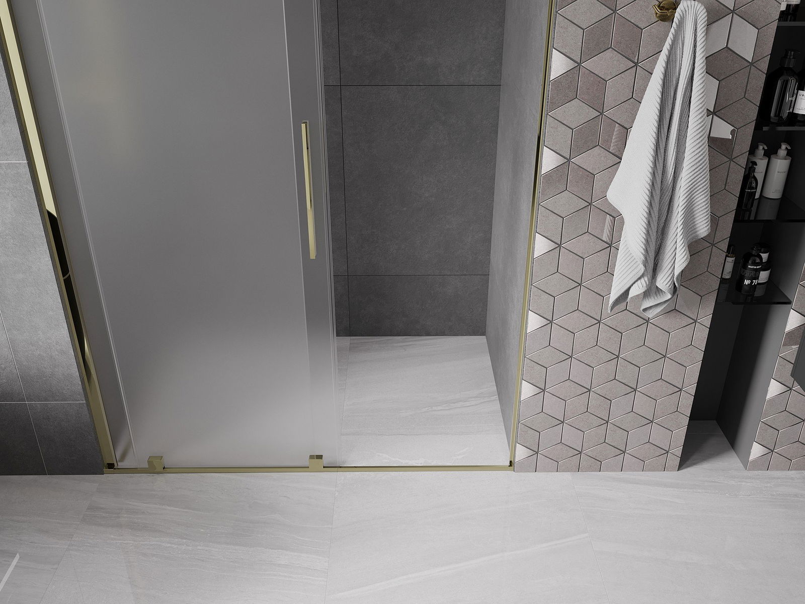 Mexen Velar drzwi prysznicowe rozsuwane 150 cm, szron, złote - 871-150-000-31-50