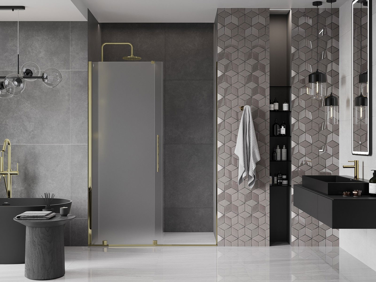 Poręczny i wygodny uchwyt został wykonany ze stali nierdzewnej. Modny kształt w połączeniu z wykończeniem dopasowanym do koloru profili nadaje całości nowoczesnego i stylowego wyglądu, podkreślając estetykę każdej łazienki.
