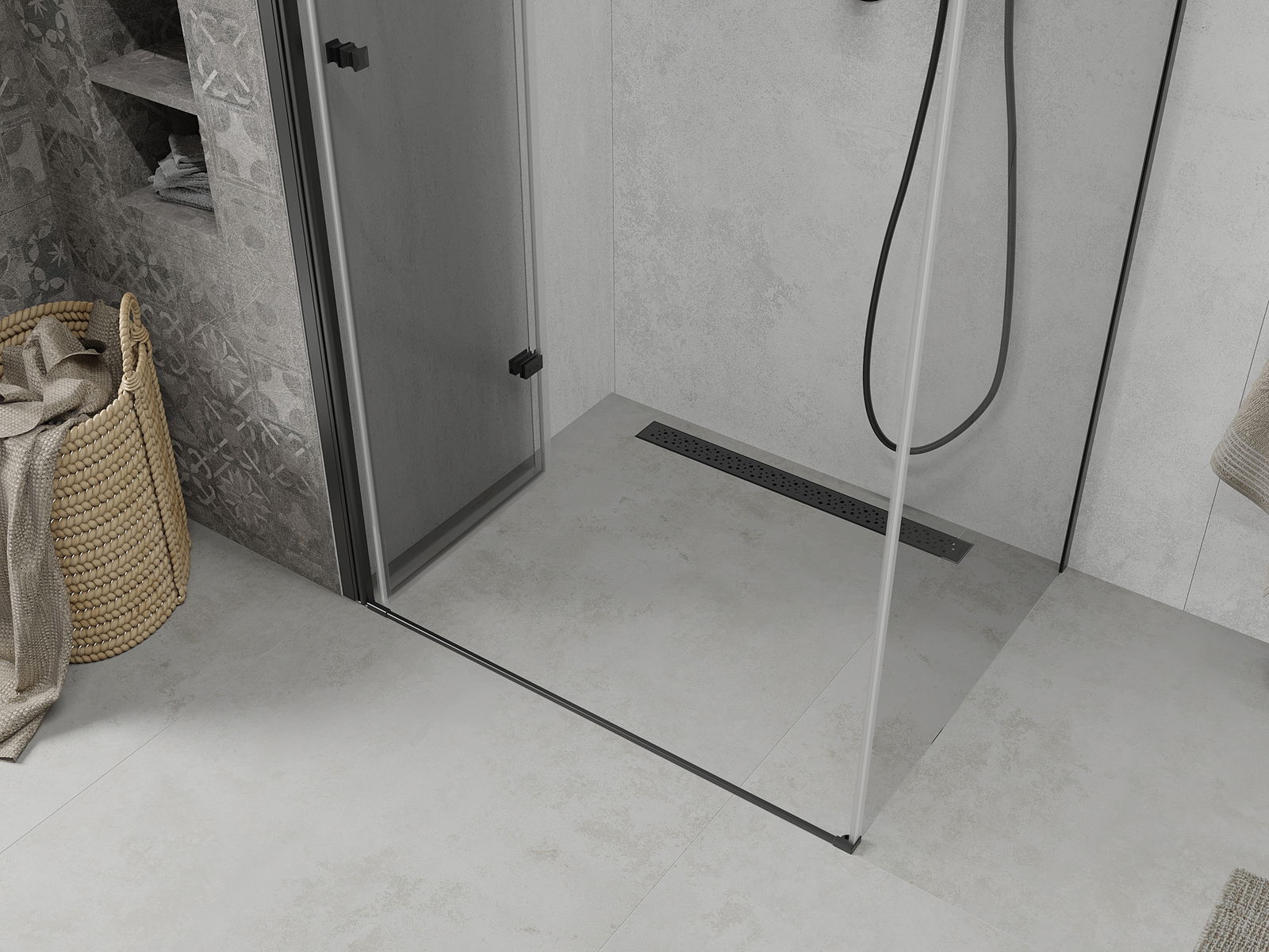 Możliwość składania drzwi, zarówno do zewnątrz, jak i do wewnątrz, pozwala uzyskać więcej przestrzeni podczas niekorzystania z prysznica. Jest to idealne rozwiązanie do mniejszych łazienek, maksymalnie wykorzystujące dostępną powierzchnię.