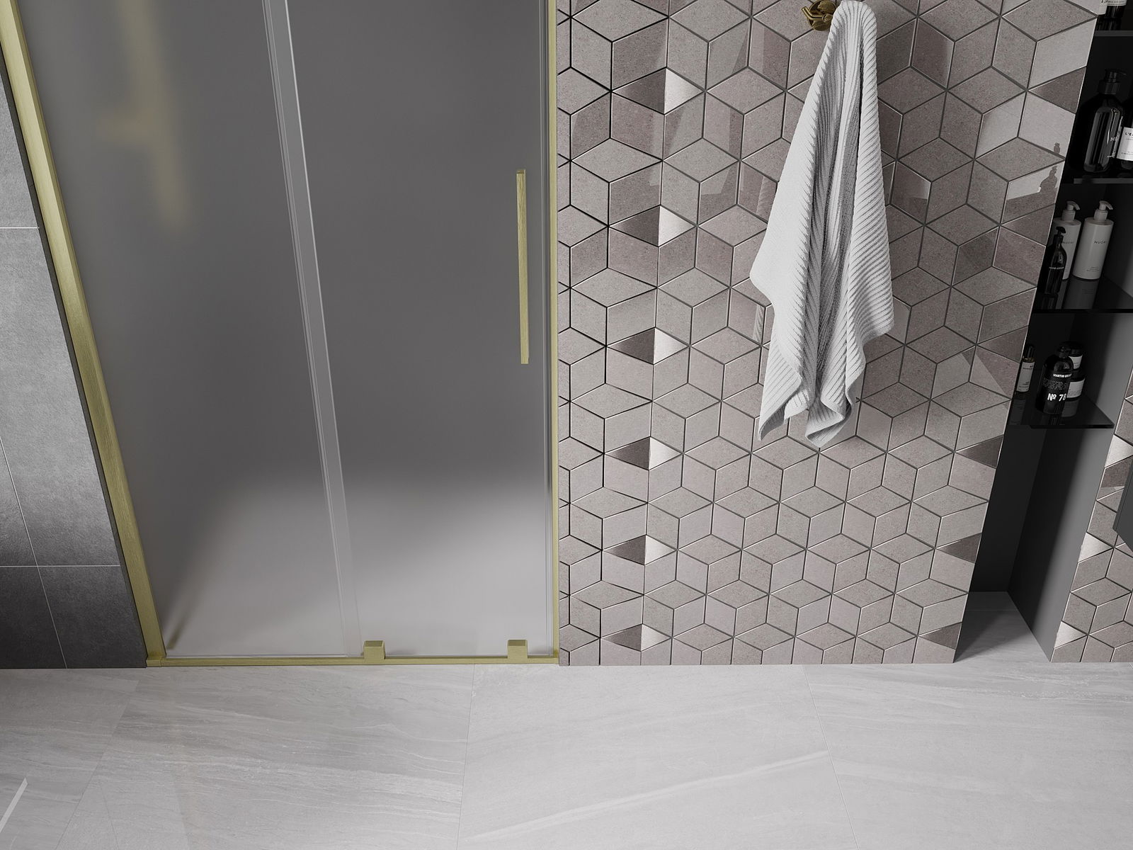 Mexen Velar drzwi prysznicowe rozsuwane 90 cm, szron, złote szczotkowane - 871-090-000-31-55