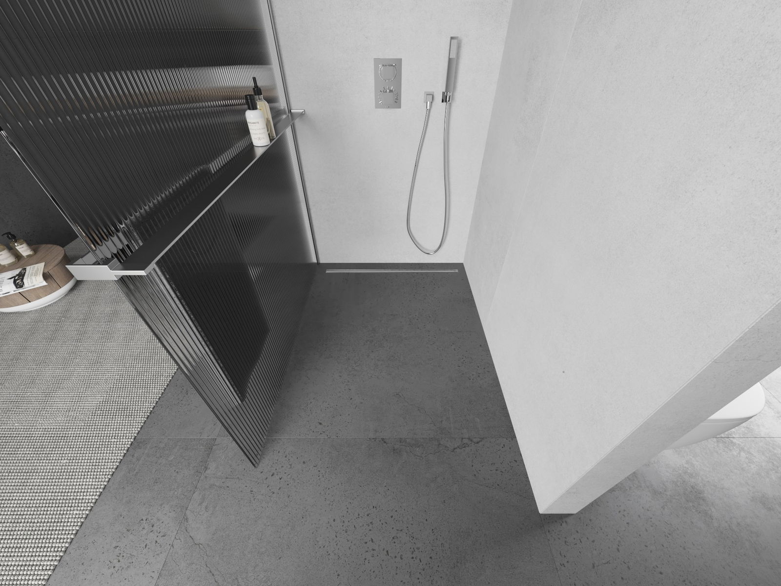 Mexen Kioto+ L ścianka prysznicowa z półką Walk-in 90 x 200 cm, prążki, chrom - 800-090-123-01-09