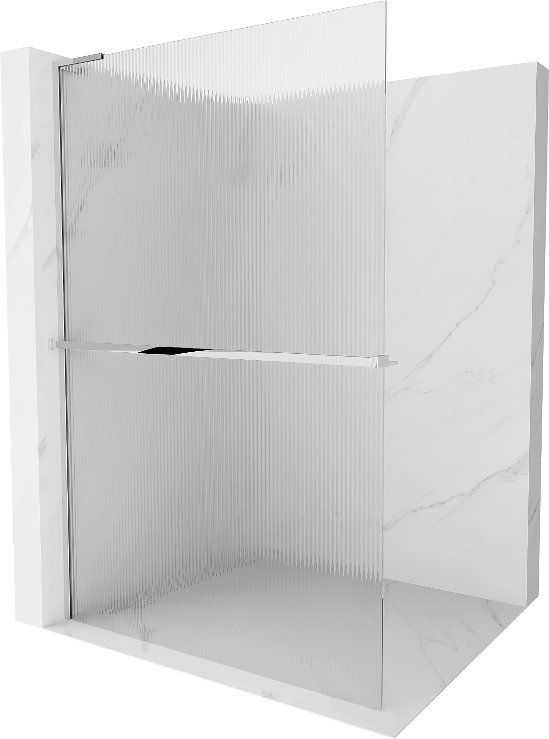Mexen Kioto+ L ścianka prysznicowa z półką Walk-in 120 x 200 cm, prążki, chrom - 800-120-123-01-09