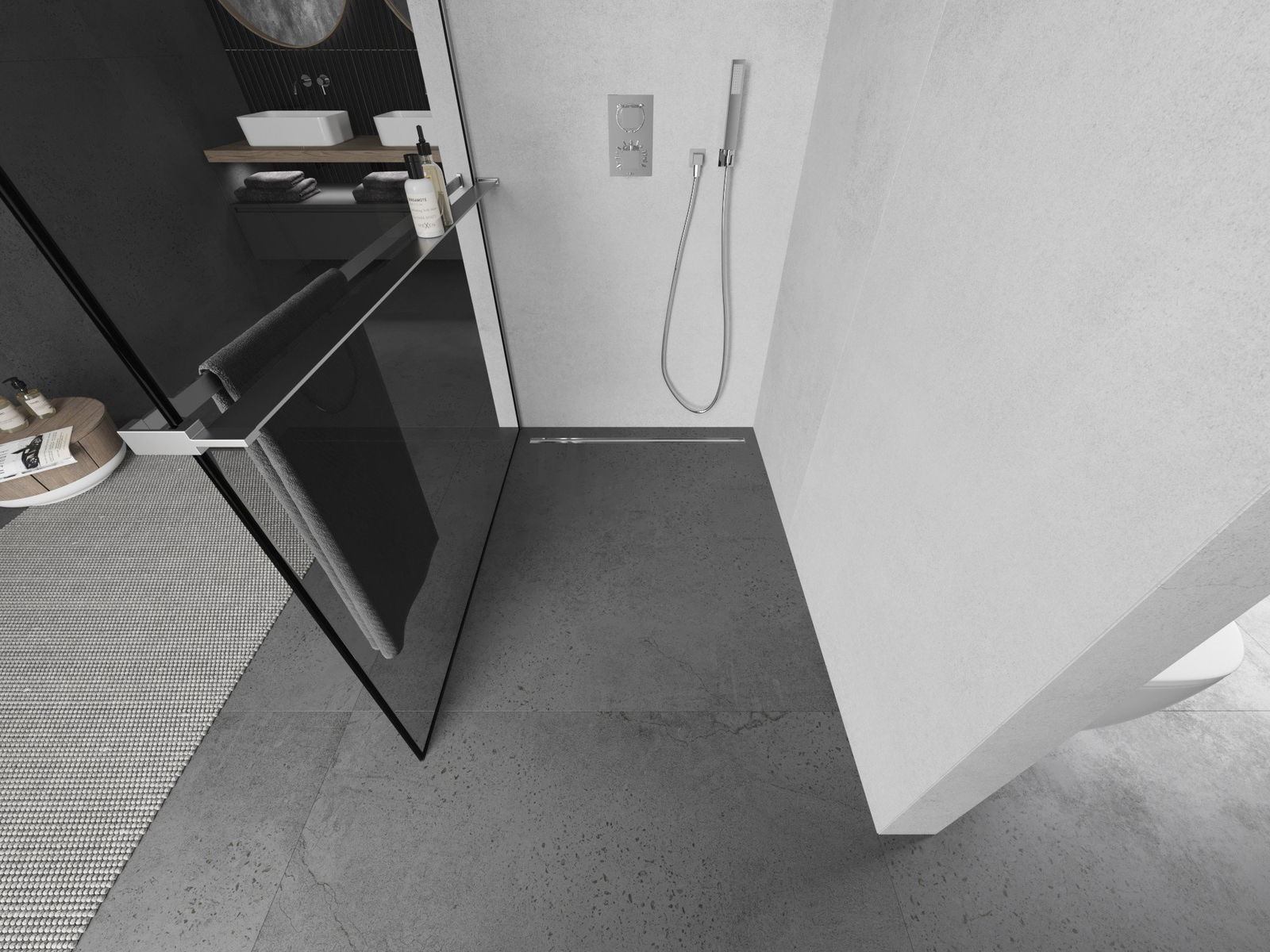 Ścianka prysznicowa walk-in to idealne rozwiązanie dla osób niepełnosprawnych. Kabina otwarta zapewnia łatwy dostęp, eliminując potrzebę pokonywania progów i drzwi. Korzystanie z prysznica jest komfortowe i przyjazne dla każdego.
