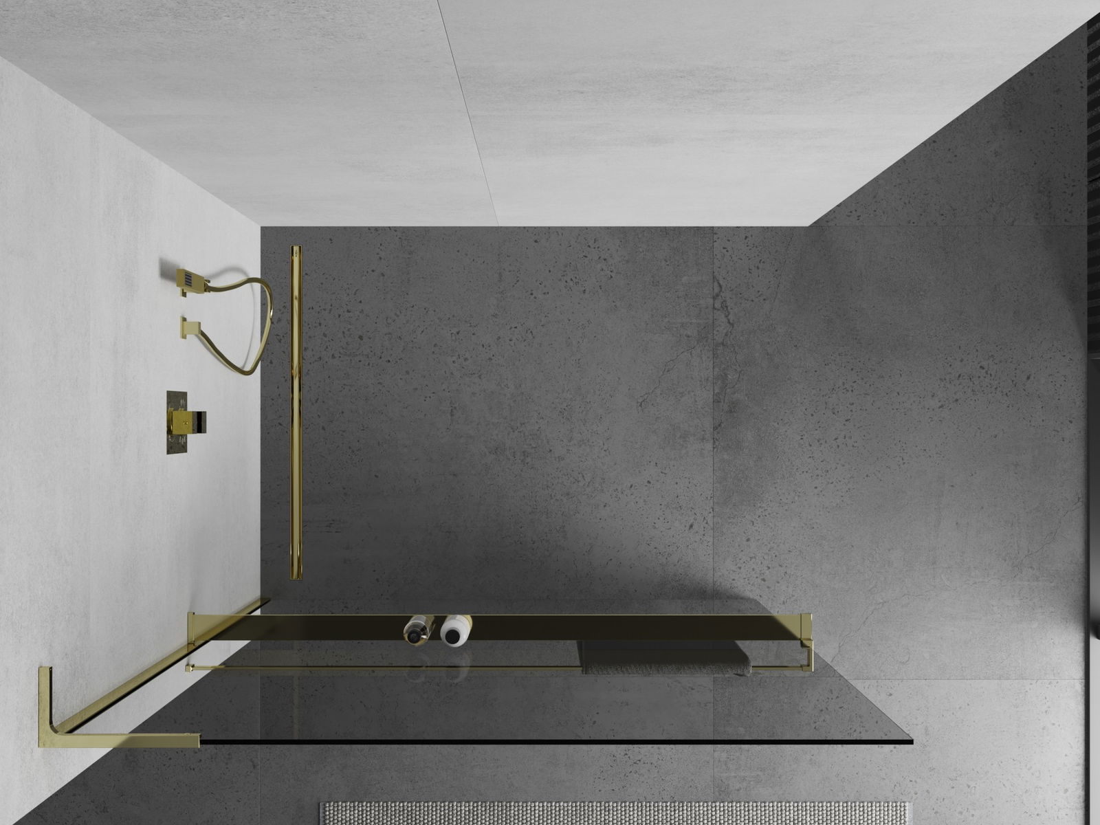 Mexen Kioto+ L ścianka prysznicowa z półką Walk-in 105 x 200 cm, transparent, złota - 800-105-123-50-00