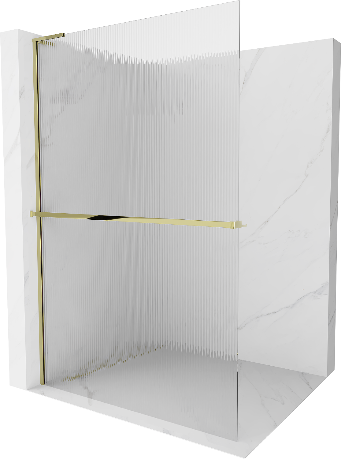 Mexen Kioto+ L ścianka prysznicowa z półką Walk-in 120 x 200 cm, prążki, złota - 800-120-123-50-09