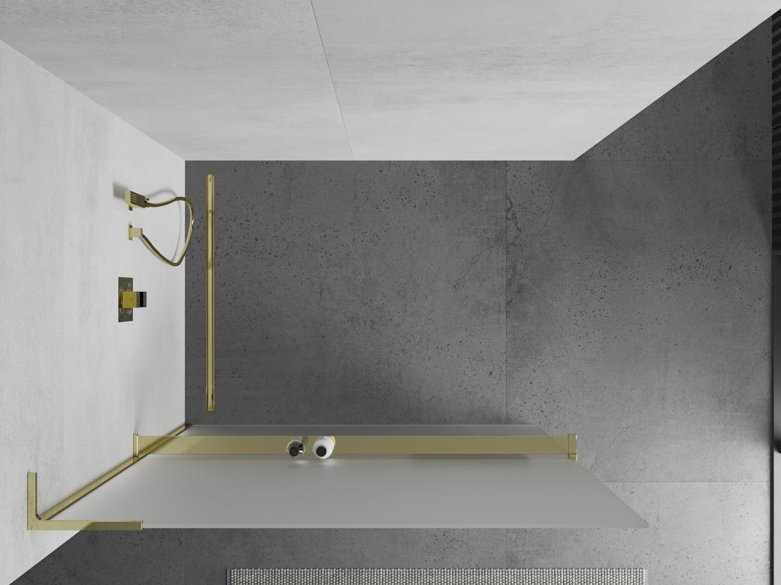 Mexen Kioto+ L ścianka prysznicowa z półką Walk-in 80 x 200 cm, szron, złota - 800-080-123-50-30
