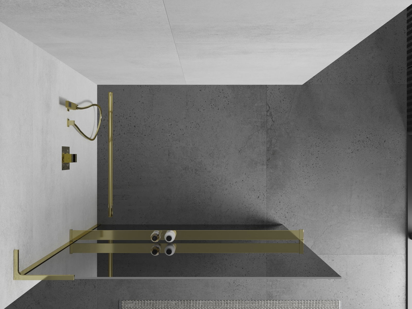 Mexen Kioto+ L ścianka prysznicowa z półką Walk-in 100 x 200 cm, lustro, złota - 800-100-123-50-50