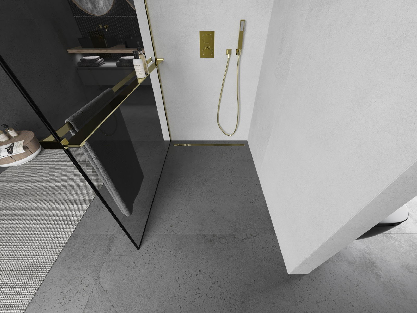 Mexen Kioto+ L ścianka prysznicowa z półką Walk-in 50 x 200 cm, czarna ramka, złota - 800-050-123-50-70