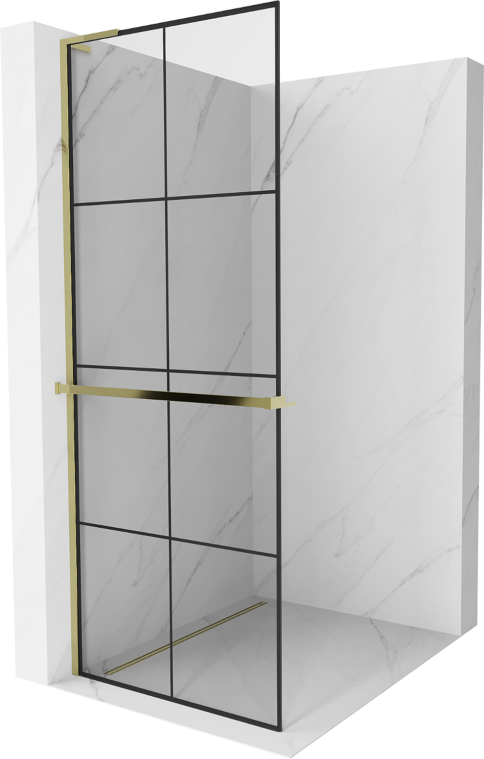 Mexen Kioto+ L ścianka prysznicowa z półką Walk-in 80 x 200 cm, czarna kratka, złota - 800-080-123-50-77