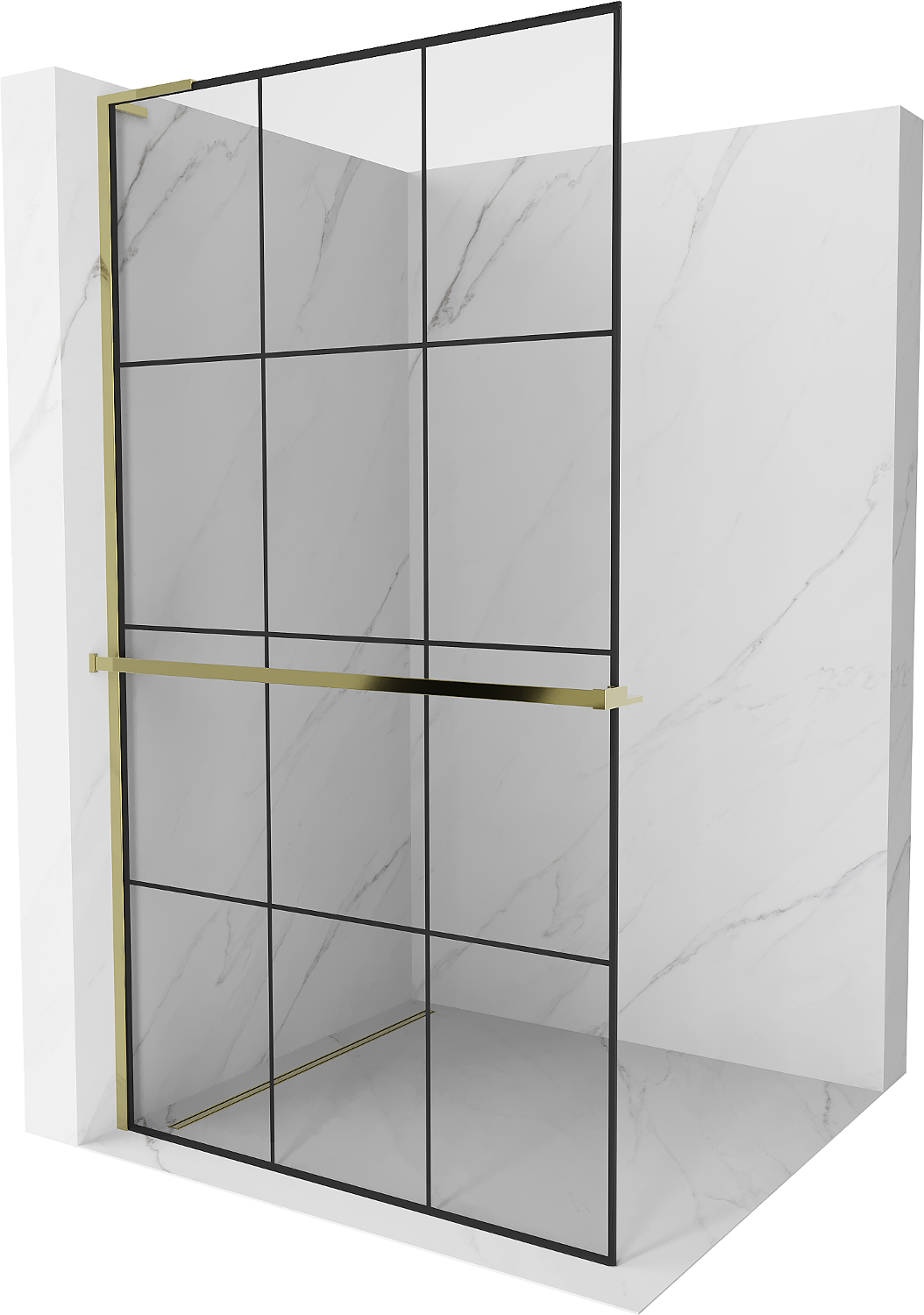 Mexen Kioto+ L ścianka prysznicowa z półką Walk-in 120 x 200 cm, czarna kratka, złota - 800-120-123-50-77
