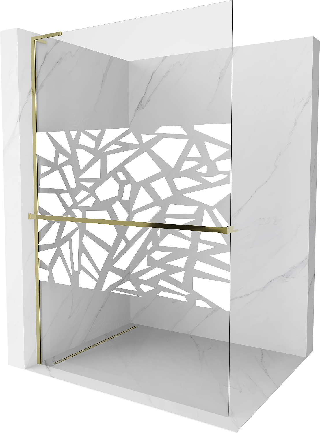 Mexen Kioto+ L ścianka prysznicowa z półką Walk-in 100 x 200 cm, biały wzór, złota - 800-100-123-50-85