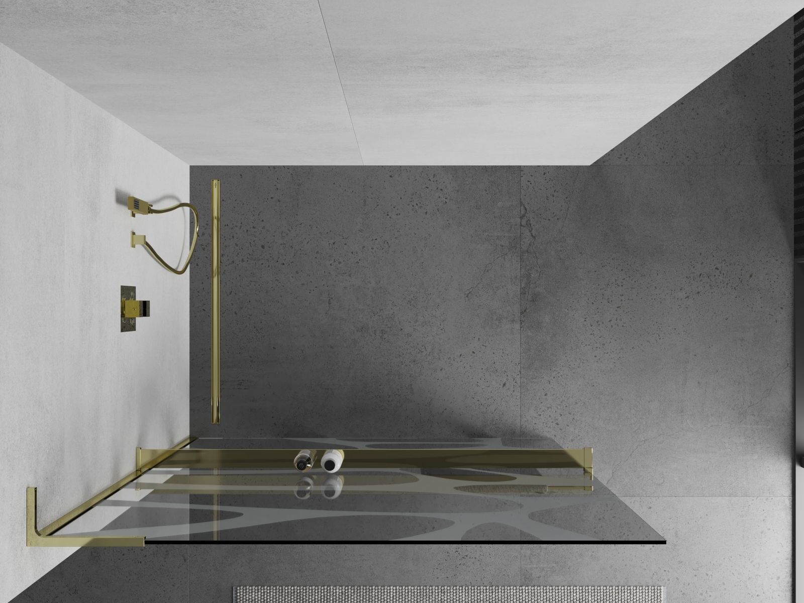 Mexen Kioto+ L ścianka prysznicowa z półką Walk-in 70 x 200 cm, biała fala, złota - 800-070-123-50-97