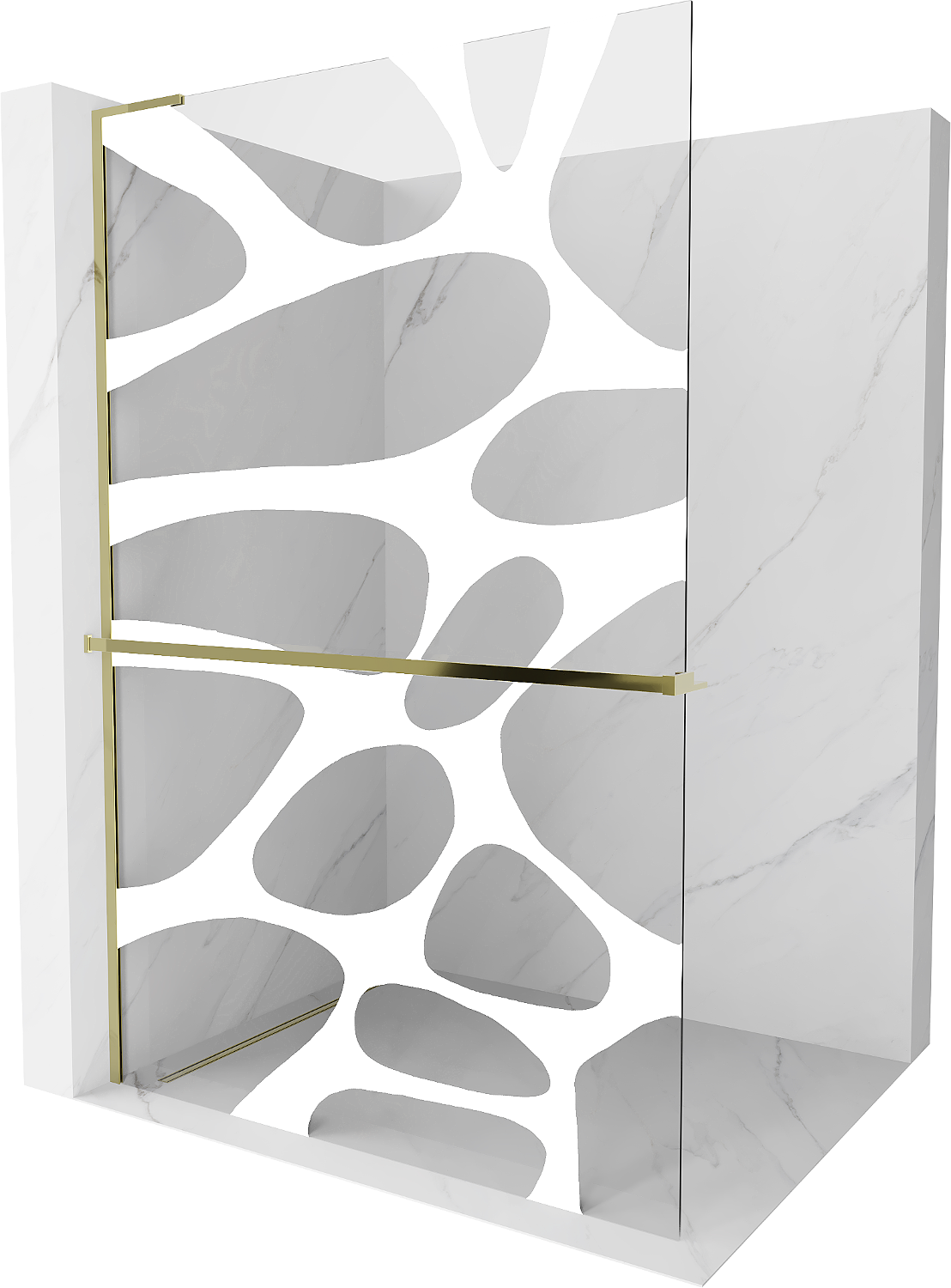 Mexen Kioto+ L ścianka prysznicowa z półką Walk-in 120 x 200 cm, biała fala, złota - 800-120-123-50-97