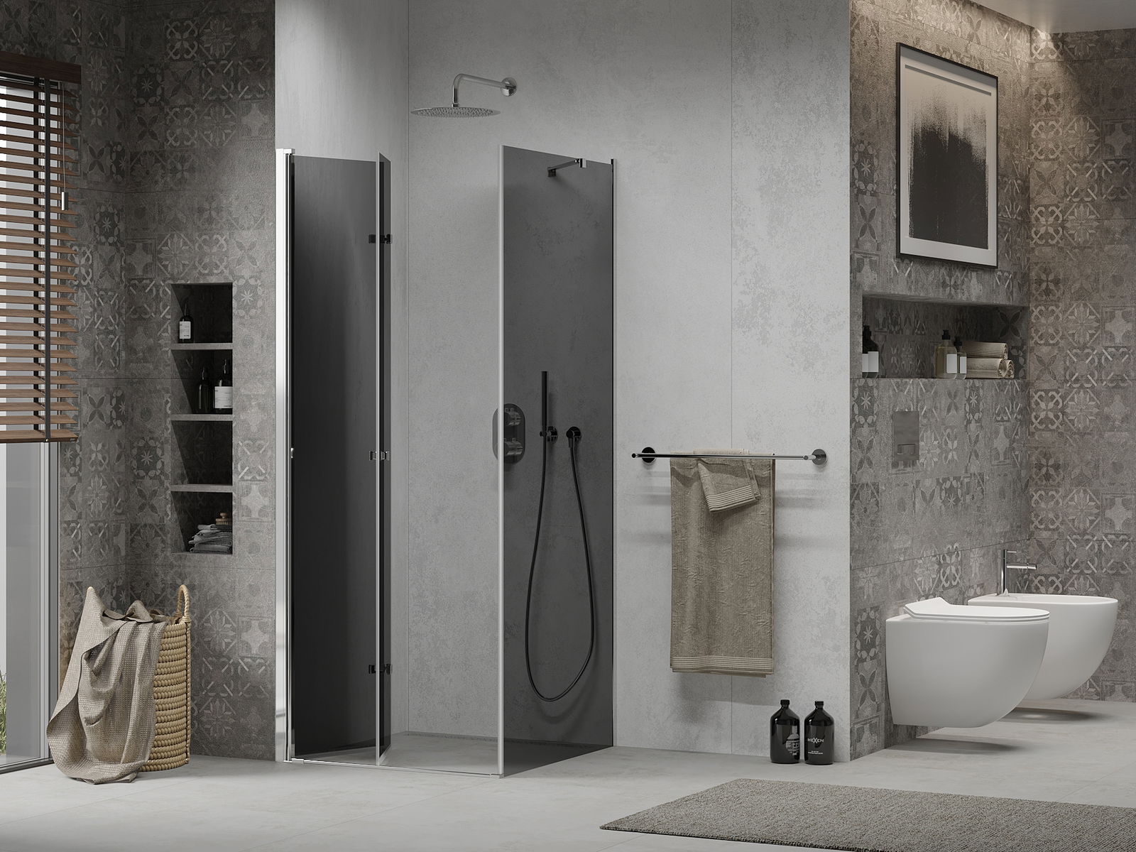 Możliwość składania drzwi, zarówno do zewnątrz, jak i do wewnątrz, pozwala uzyskać więcej przestrzeni podczas niekorzystania z prysznica. Jest to idealne rozwiązanie do mniejszych łazienek, maksymalnie wykorzystujące dostępną powierzchnię.