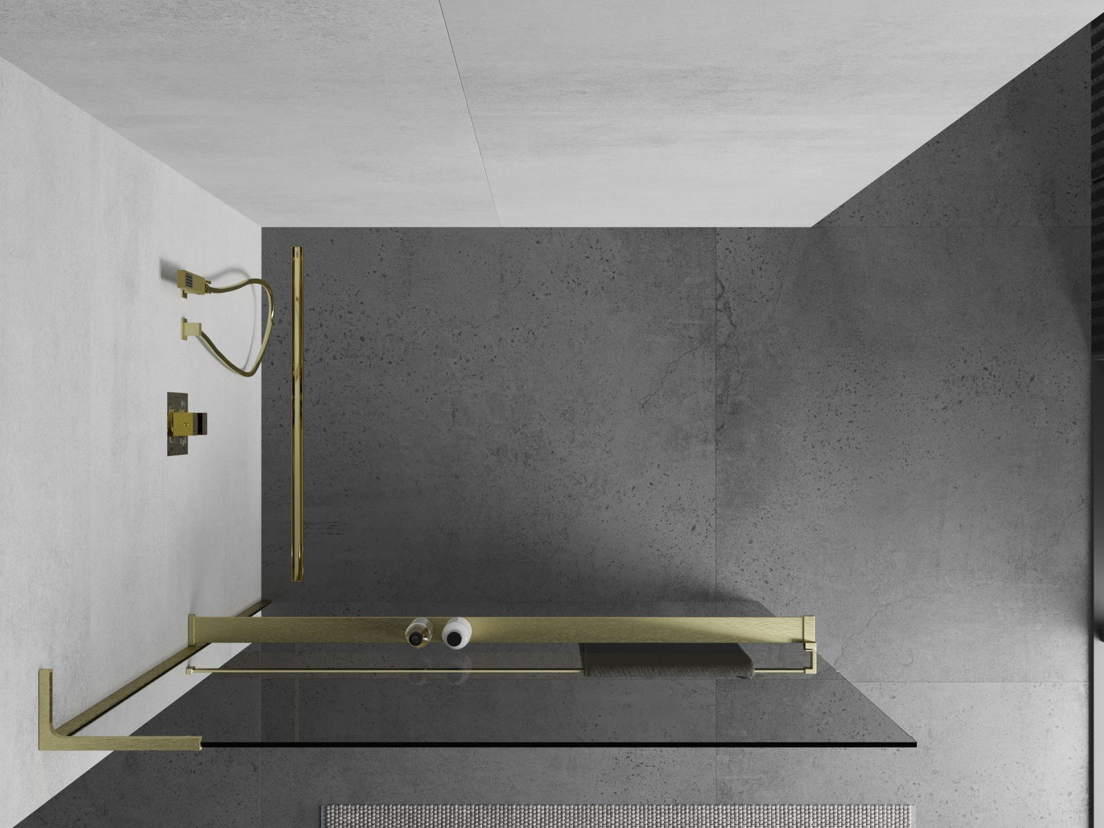 Mexen Kioto+ L ścianka prysznicowa z półką Walk-in 70 x 200 cm, transparent, złota szczotkowana - 800-070-123-55-00