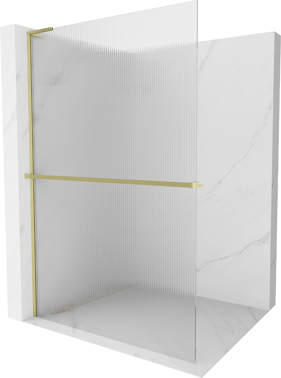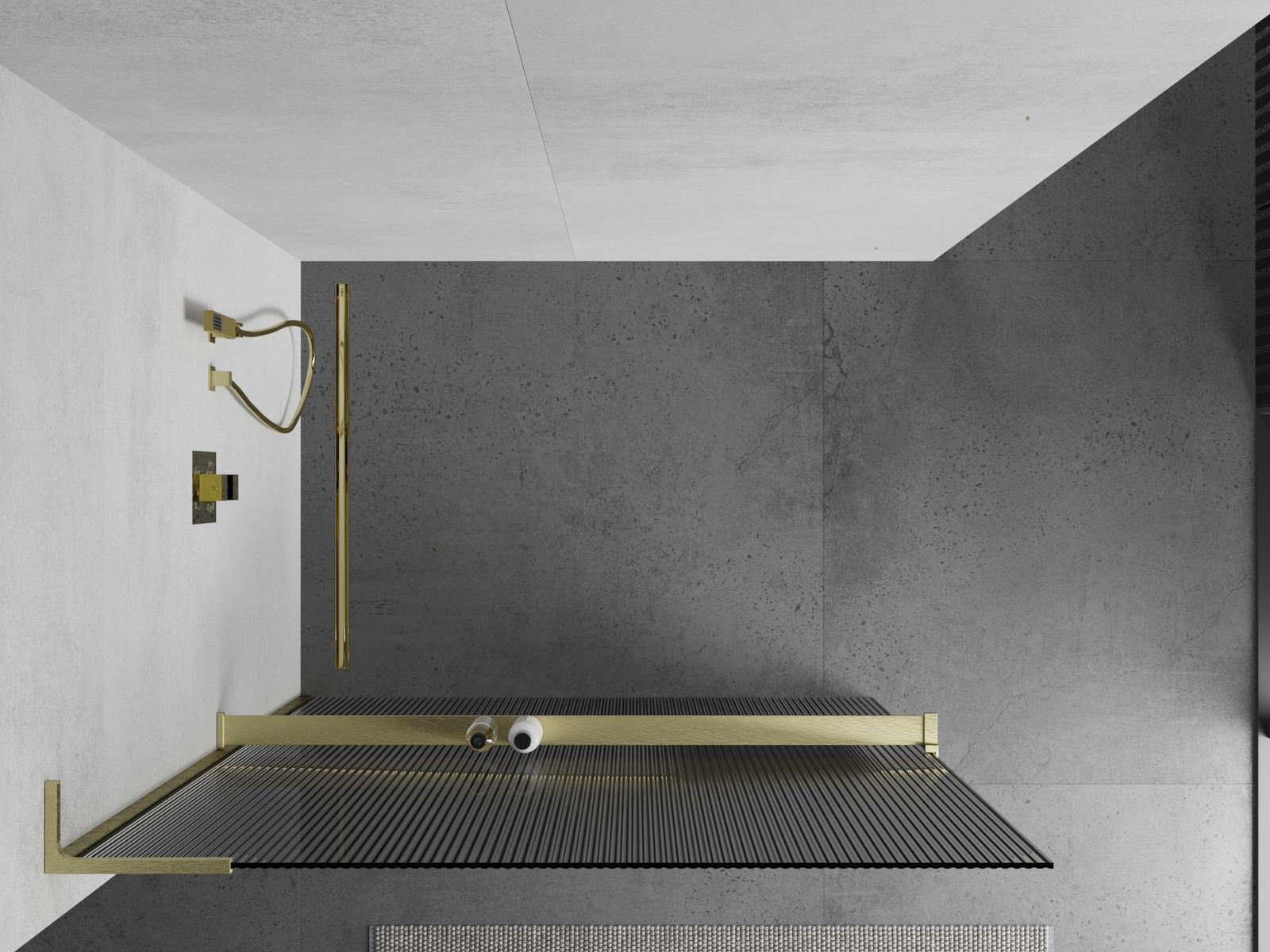 Mexen Kioto+ L ścianka prysznicowa z półką Walk-in 120 x 200 cm, prążki, złota szczotkowana - 800-120-123-55-09