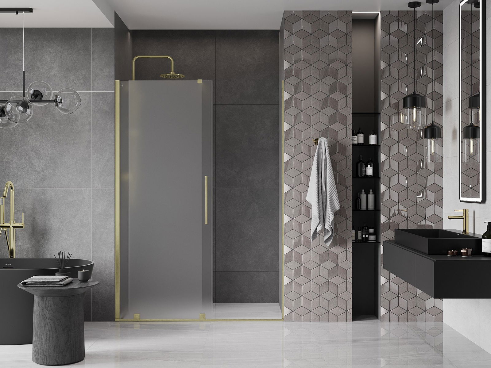 Mexen Velar drzwi prysznicowe rozsuwane 140 cm, szron, złote szczotkowane - 871-140-000-31-55