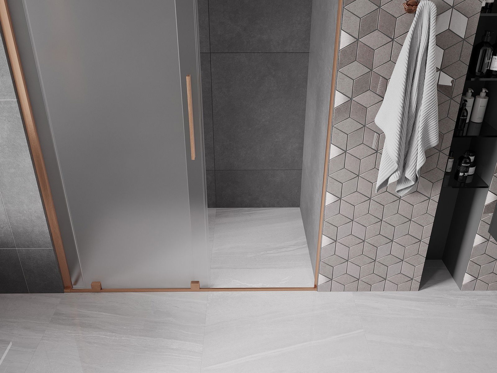 Mexen Velar drzwi prysznicowe rozsuwane 160 cm, szron, miedź szczotkowana - 871-160-000-31-65