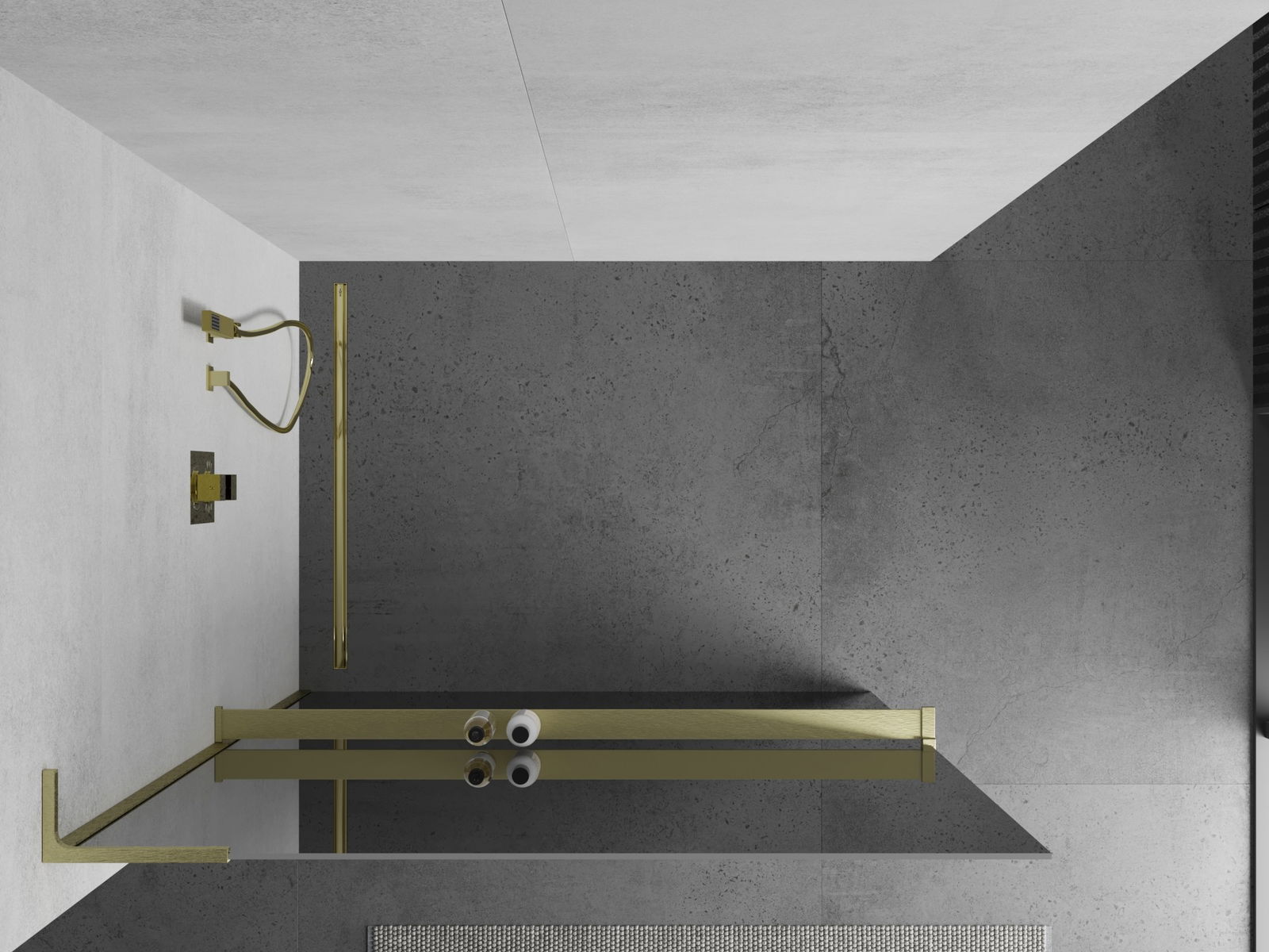 Mexen Kioto+ L ścianka prysznicowa z półką Walk-in 120 x 200 cm, lustro, złota szczotkowana - 800-120-123-55-50