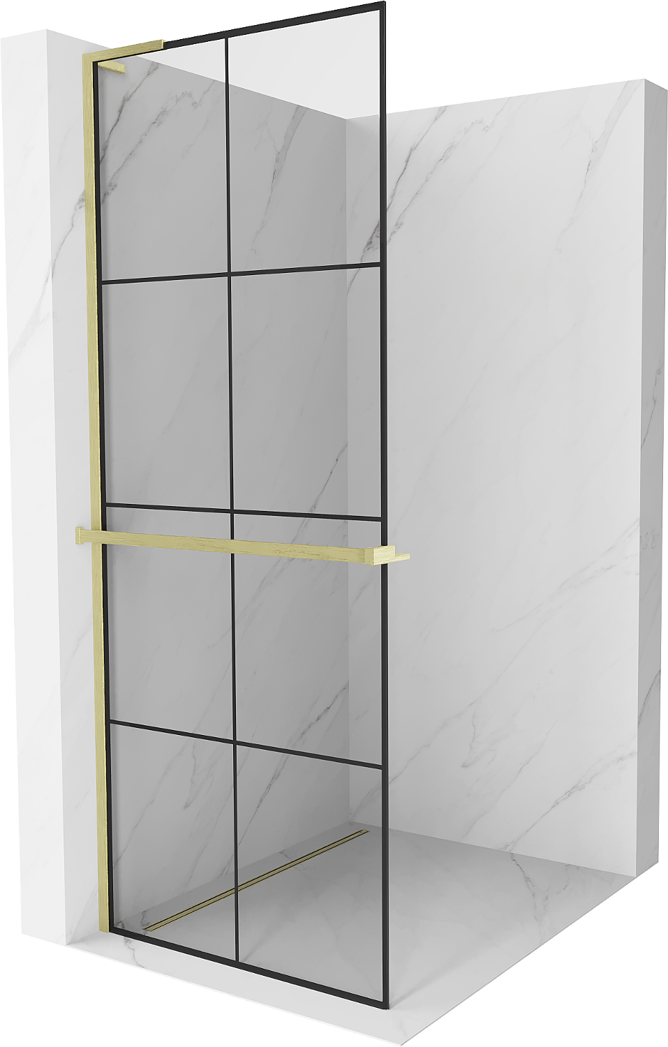 Mexen Kioto+ L ścianka prysznicowa z półką Walk-in 70 x 200 cm, czarna kratka, złota szczotkowana - 800-070-123-55-77