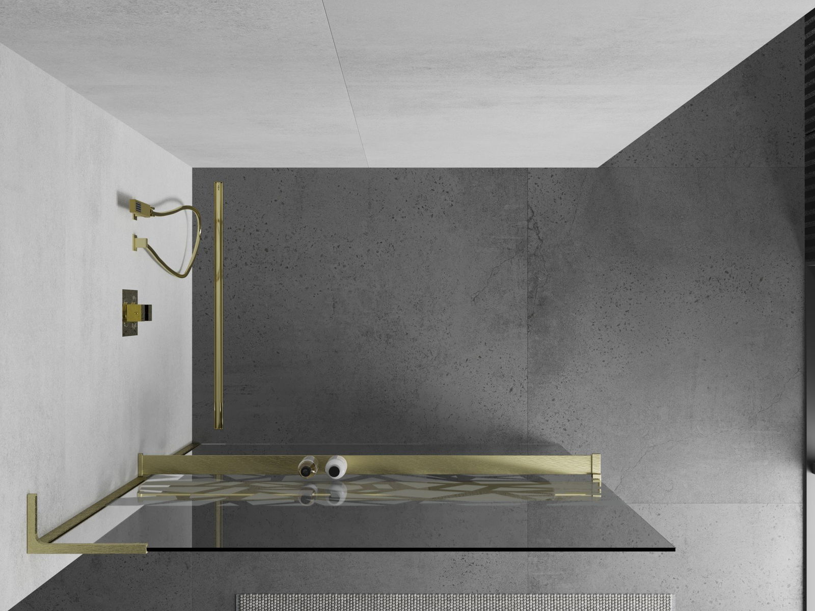 Mexen Kioto+ L ścianka prysznicowa z półką Walk-in 70 x 200 cm, biały wzór, złota szczotkowana - 800-070-123-55-85