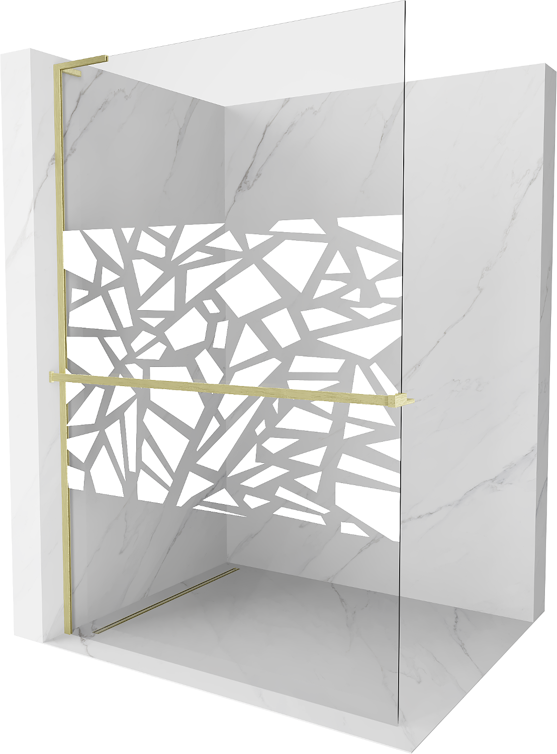 Mexen Kioto+ L ścianka prysznicowa z półką Walk-in 100 x 200 cm, biały wzór, złota szczotkowana - 800-100-123-55-85