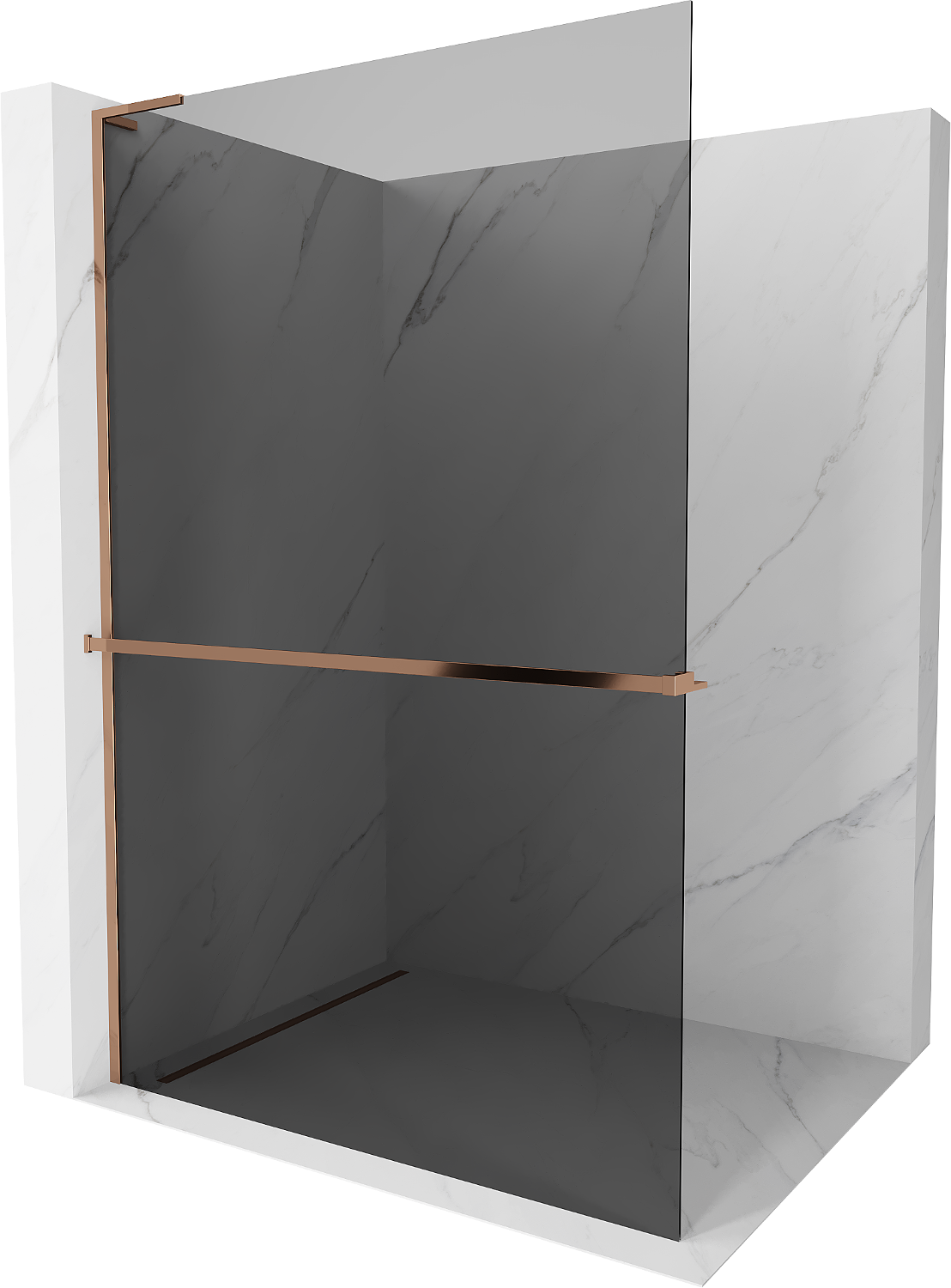 Mexen Kioto+ L ścianka prysznicowa z półką Walk-in 100 x 200 cm, grafit, różowe złoto - 800-100-123-60-40