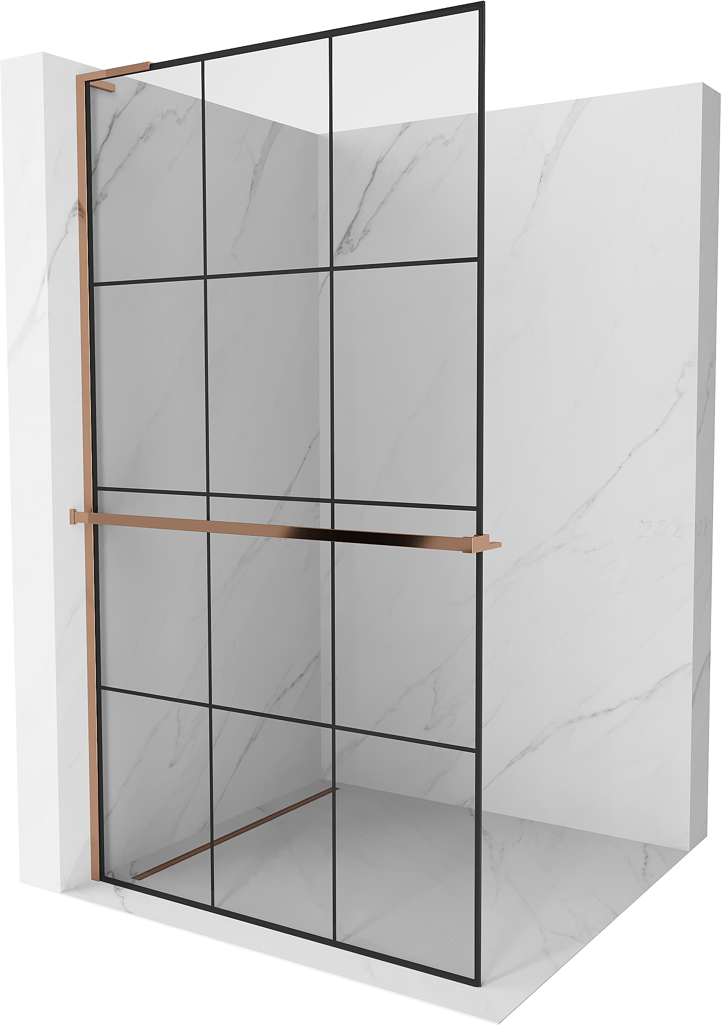 Mexen Kioto+ L ścianka prysznicowa z półką Walk-in 120 x 200 cm, czarna kratka, różowe złoto - 800-120-123-60-77