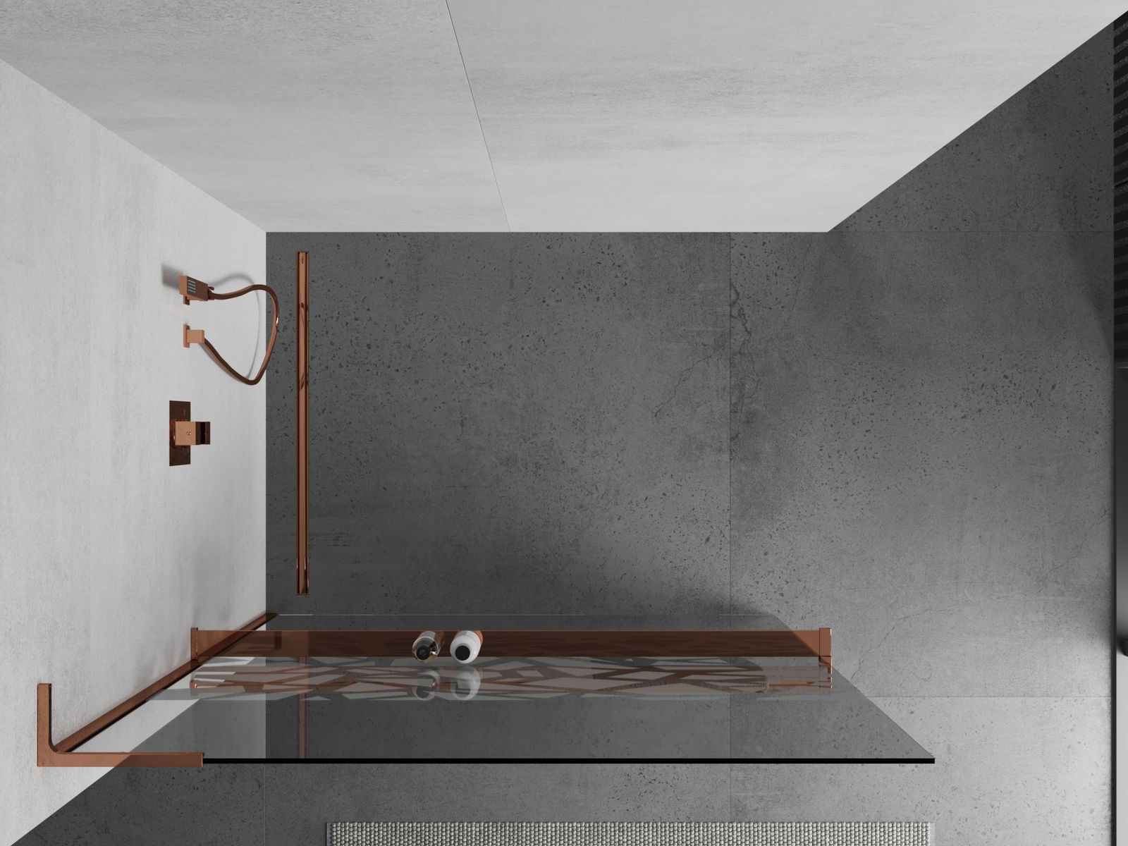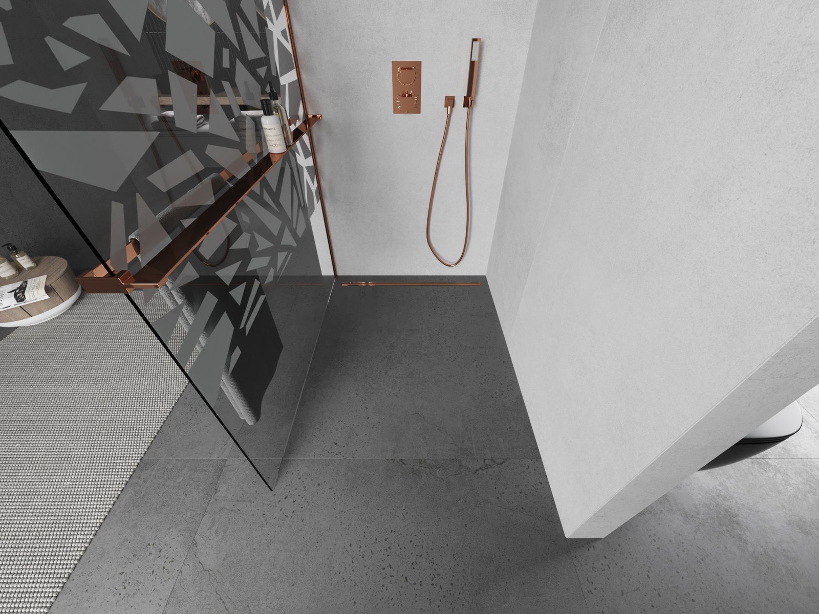Mexen Kioto+ L ścianka prysznicowa z półką Walk-in 80 x 200 cm, biały wzór, różowe złoto - 800-080-123-60-85
