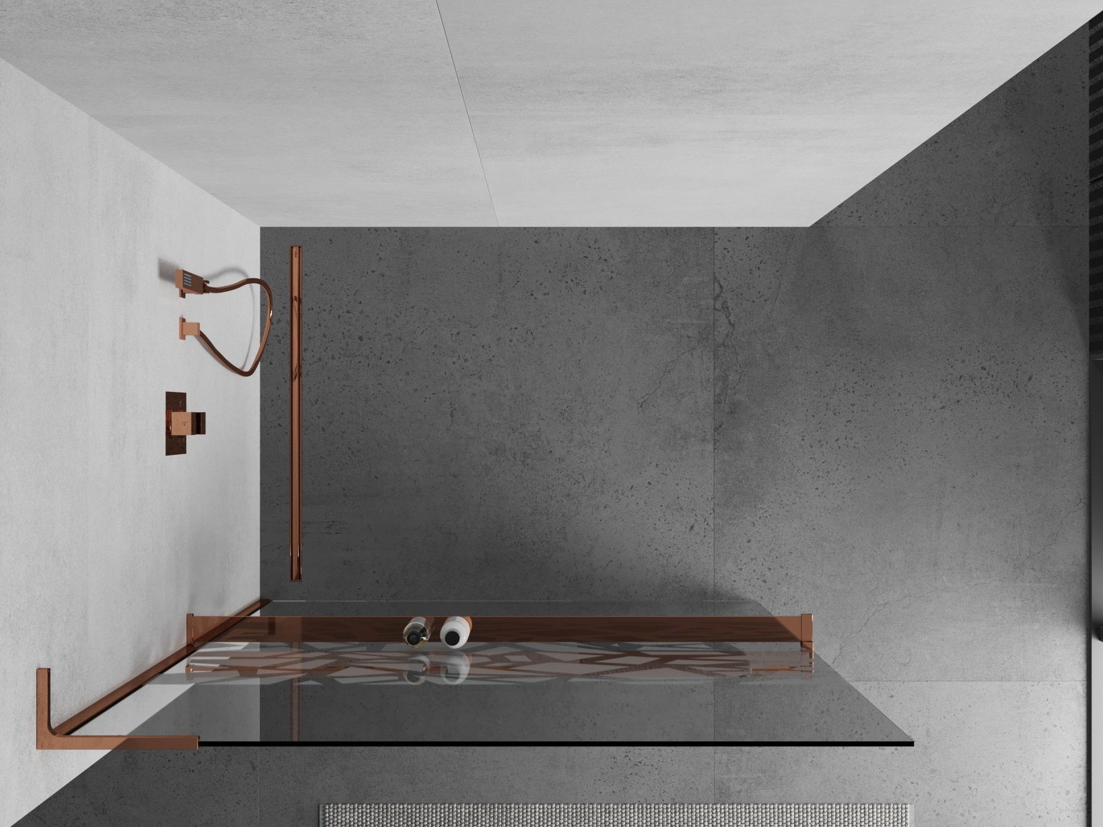 Mexen Kioto+ L ścianka prysznicowa z półką Walk-in 110 x 200 cm, biały wzór, różowe złoto - 800-110-123-60-85