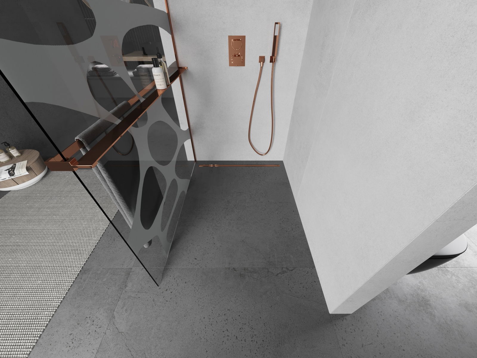 Mexen Kioto+ L ścianka prysznicowa z półką Walk-in 90 x 200 cm, biała fala, różowe złoto - 800-090-123-60-97