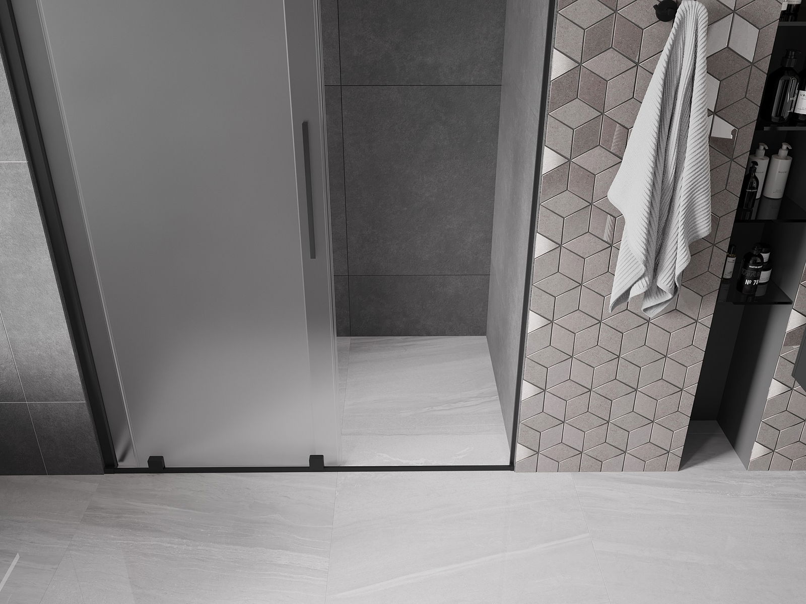 Mexen Velar drzwi prysznicowe rozsuwane 160 cm, szron, czarne - 871-160-000-31-70
