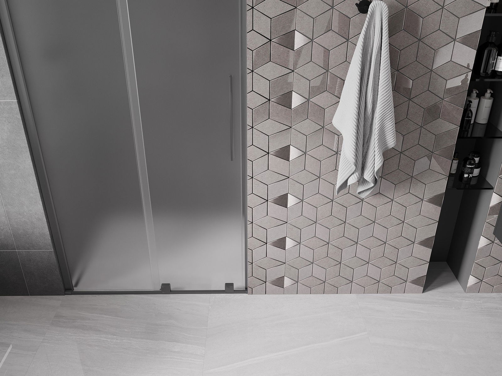 Poręczny i wygodny uchwyt został wykonany ze stali nierdzewnej. Modny kształt w połączeniu z wykończeniem dopasowanym do koloru profili nadaje całości nowoczesnego i stylowego wyglądu, podkreślając estetykę każdej łazienki.
