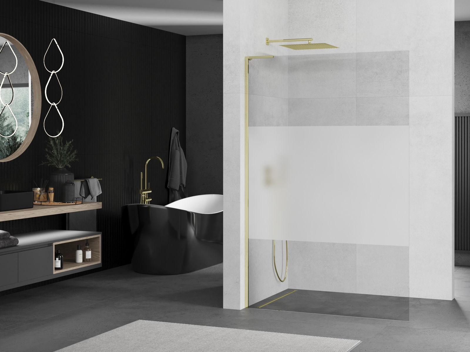 Ścianka prysznicowa walk-in to idealne rozwiązanie dla osób niepełnosprawnych. Kabina otwarta zapewnia łatwy dostęp, eliminując potrzebę pokonywania progów i drzwi. Korzystanie z prysznica jest komfortowe i przyjazne dla każdego.
