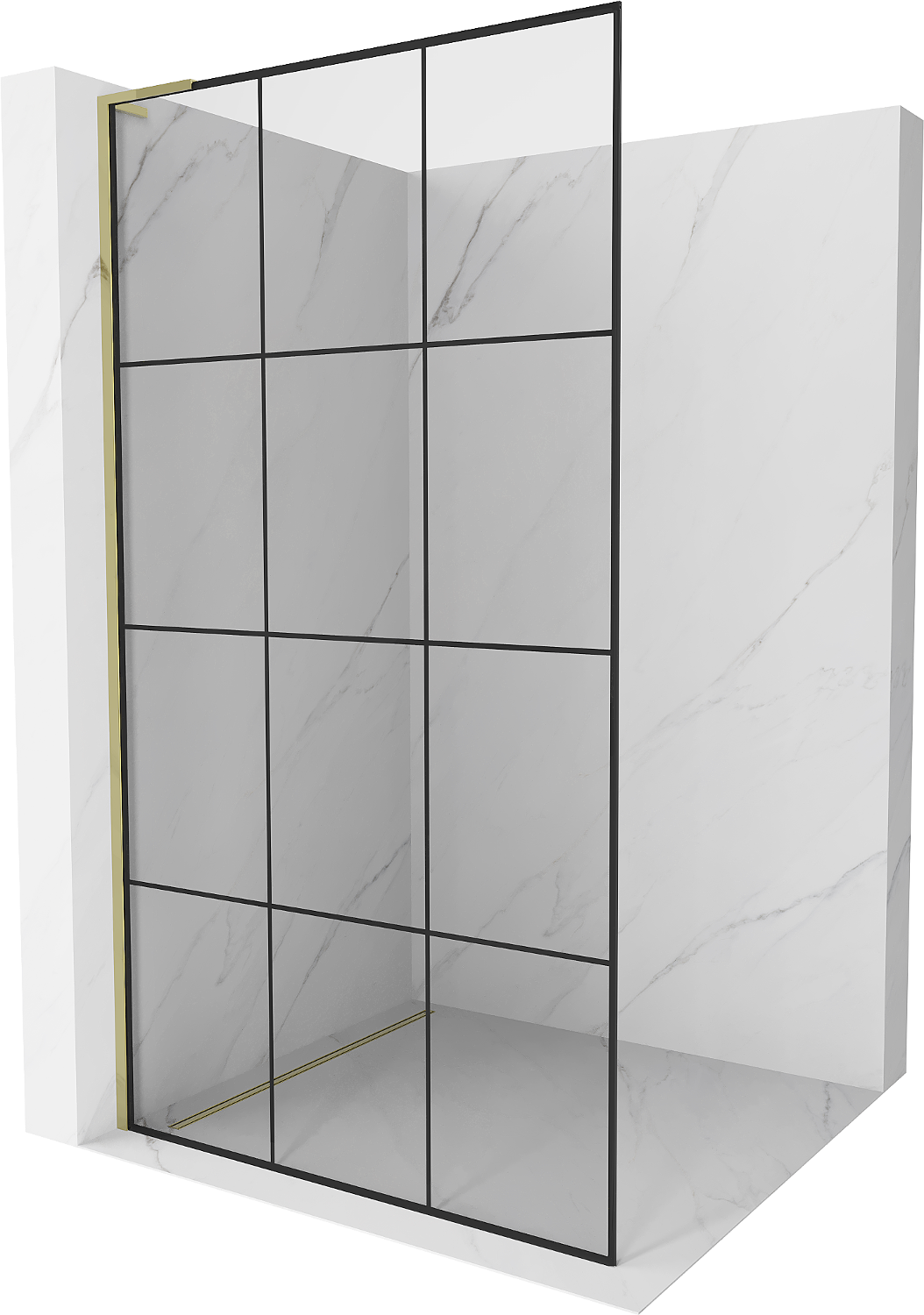 Mexen Kioto L ścianka prysznicowa Walk-in 100 x 200 cm, czarna kratka, złota - 800-100-103-50-77