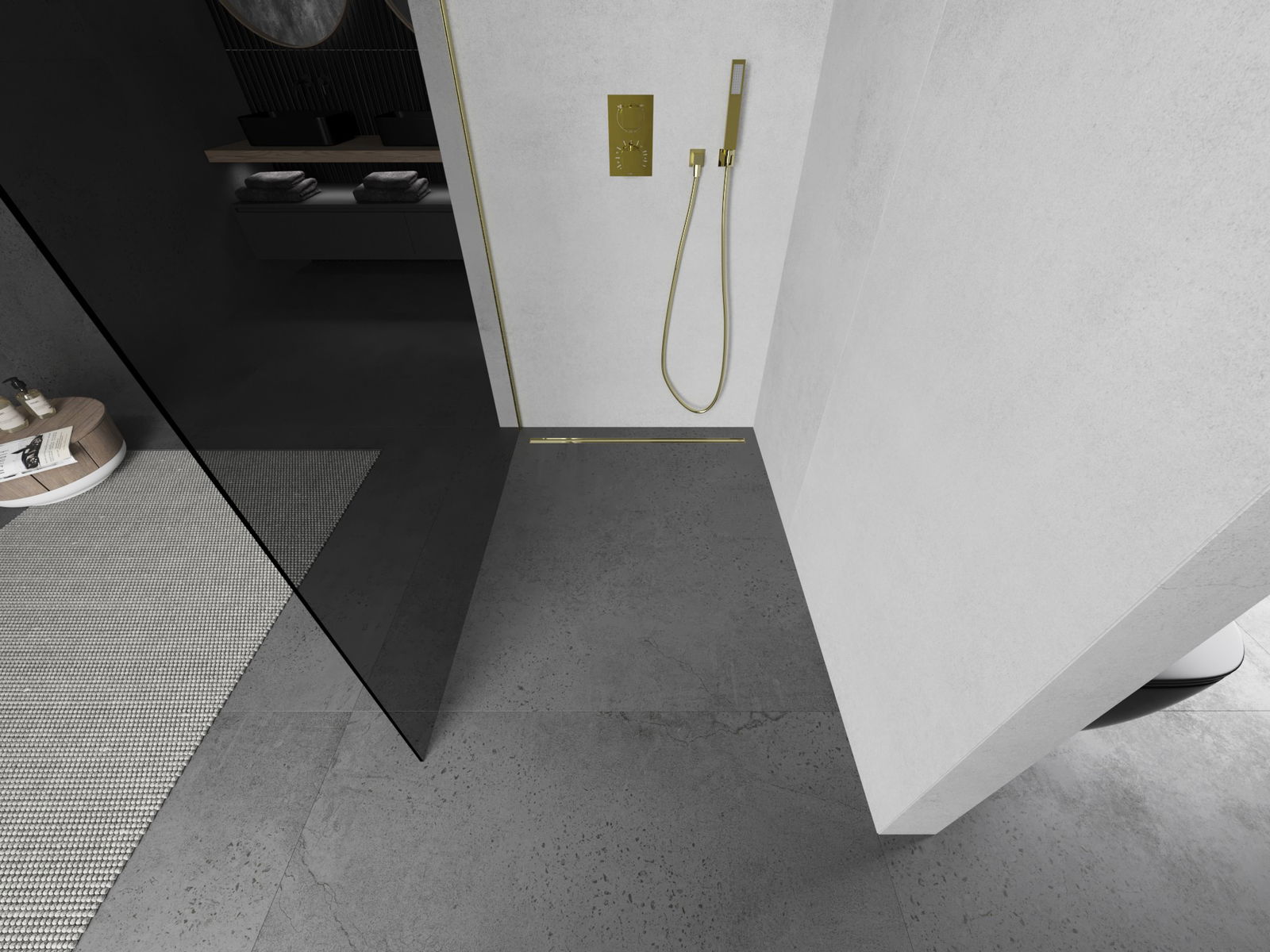 Mexen Kioto L ścianka prysznicowa Walk-in 70 x 200 cm, grafit, złota szczotkowana - 800-070-103-55-40