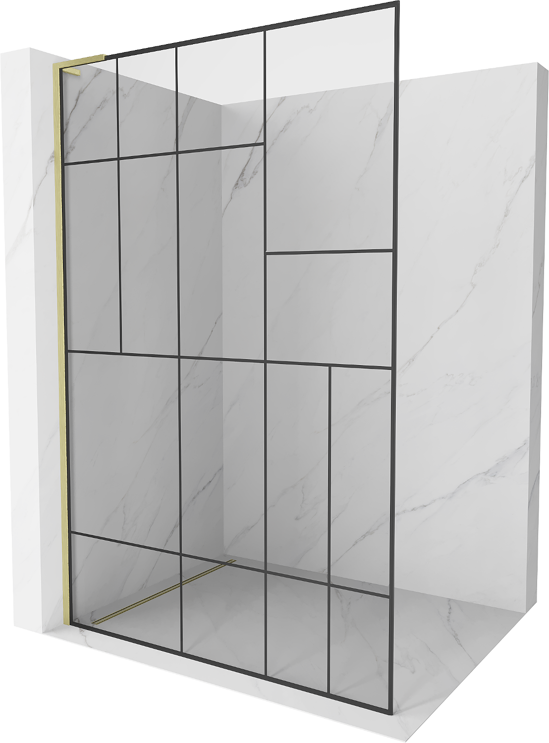 Mexen Kioto L ścianka prysznicowa Walk-in 90 x 200 cm, czarny wzór, złota szczotkowana - 800-090-103-55-78