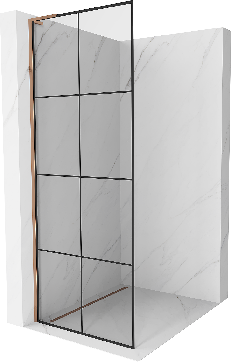 Mexen Kioto L ścianka prysznicowa Walk-in 70 x 200 cm, czarna kratka, różowe złoto - 800-070-103-60-77
