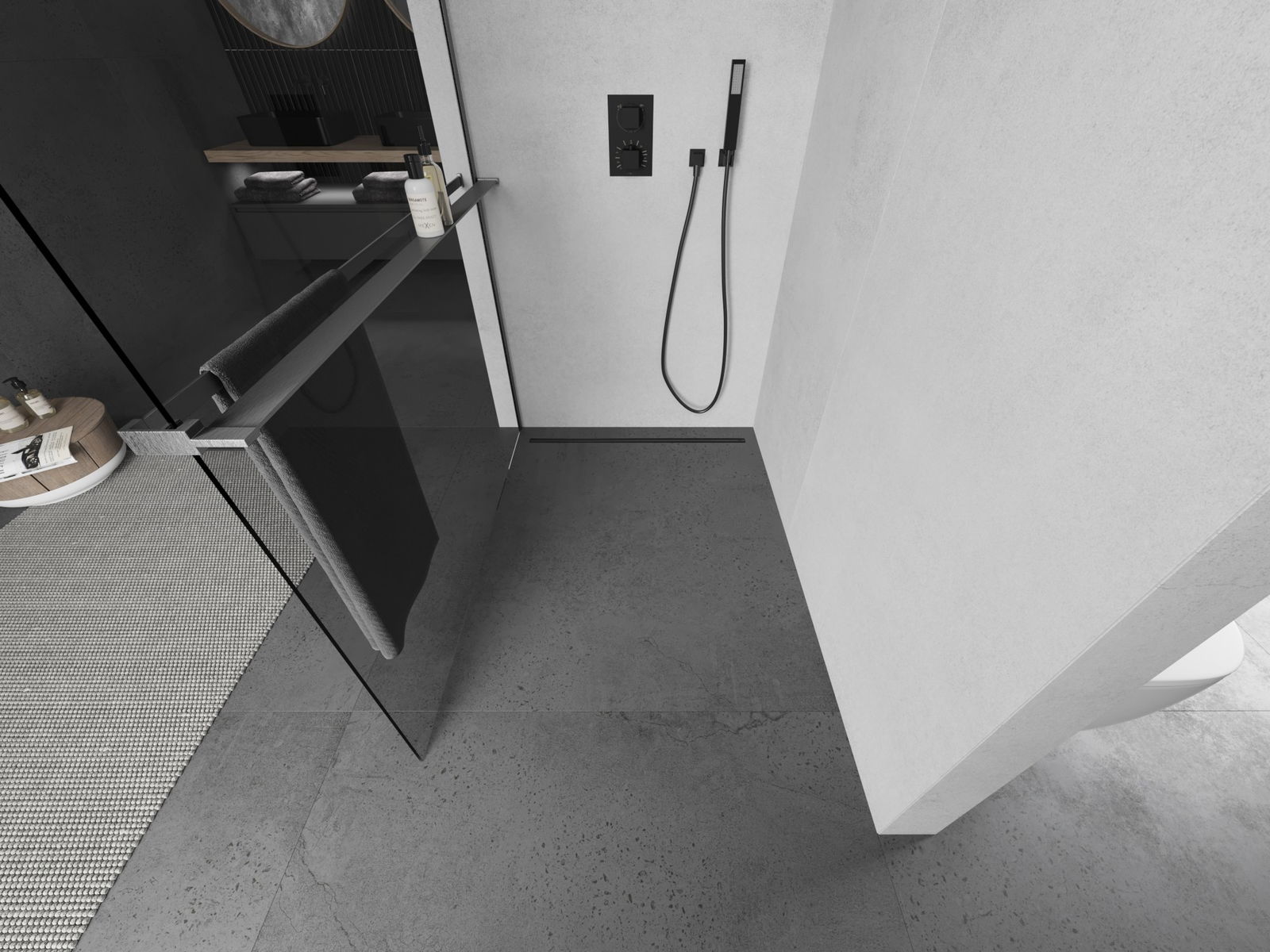 Ścianka prysznicowa walk-in to idealne rozwiązanie dla osób niepełnosprawnych. Kabina otwarta zapewnia łatwy dostęp, eliminując potrzebę pokonywania progów i drzwi. Korzystanie z prysznica jest komfortowe i przyjazne dla każdego.