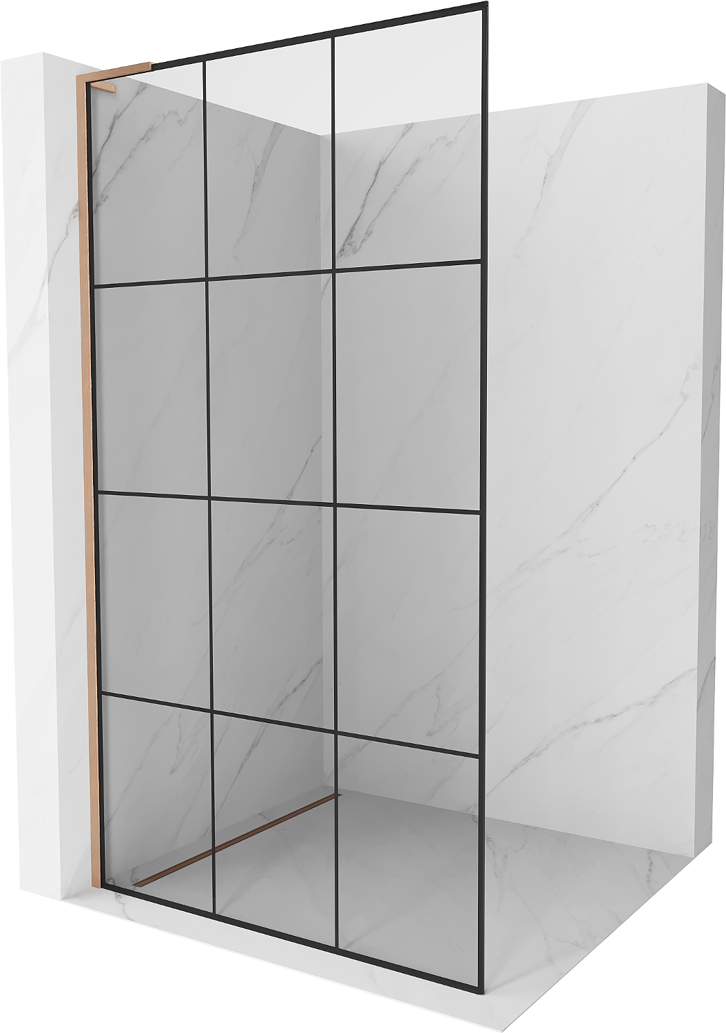 Mexen Kioto L ścianka prysznicowa Walk-in 110 x 200 cm, czarna kratka, miedź szczotkowana - 800-110-103-65-77