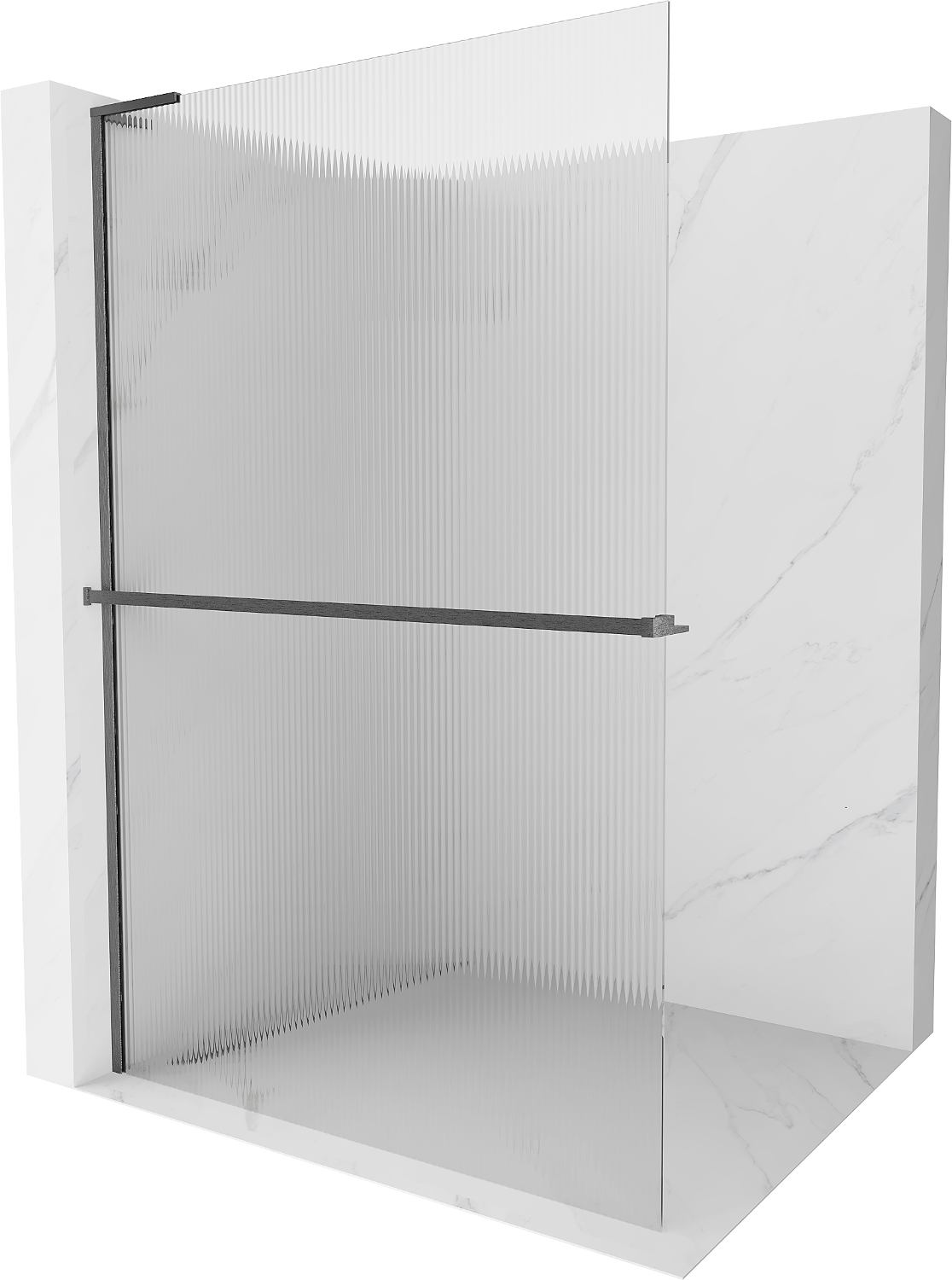 Mexen Kioto+ L ścianka prysznicowa z półką Walk-in 110 x 200 cm, prążki, gun gray szczotkowany - 800-110-123-66-09