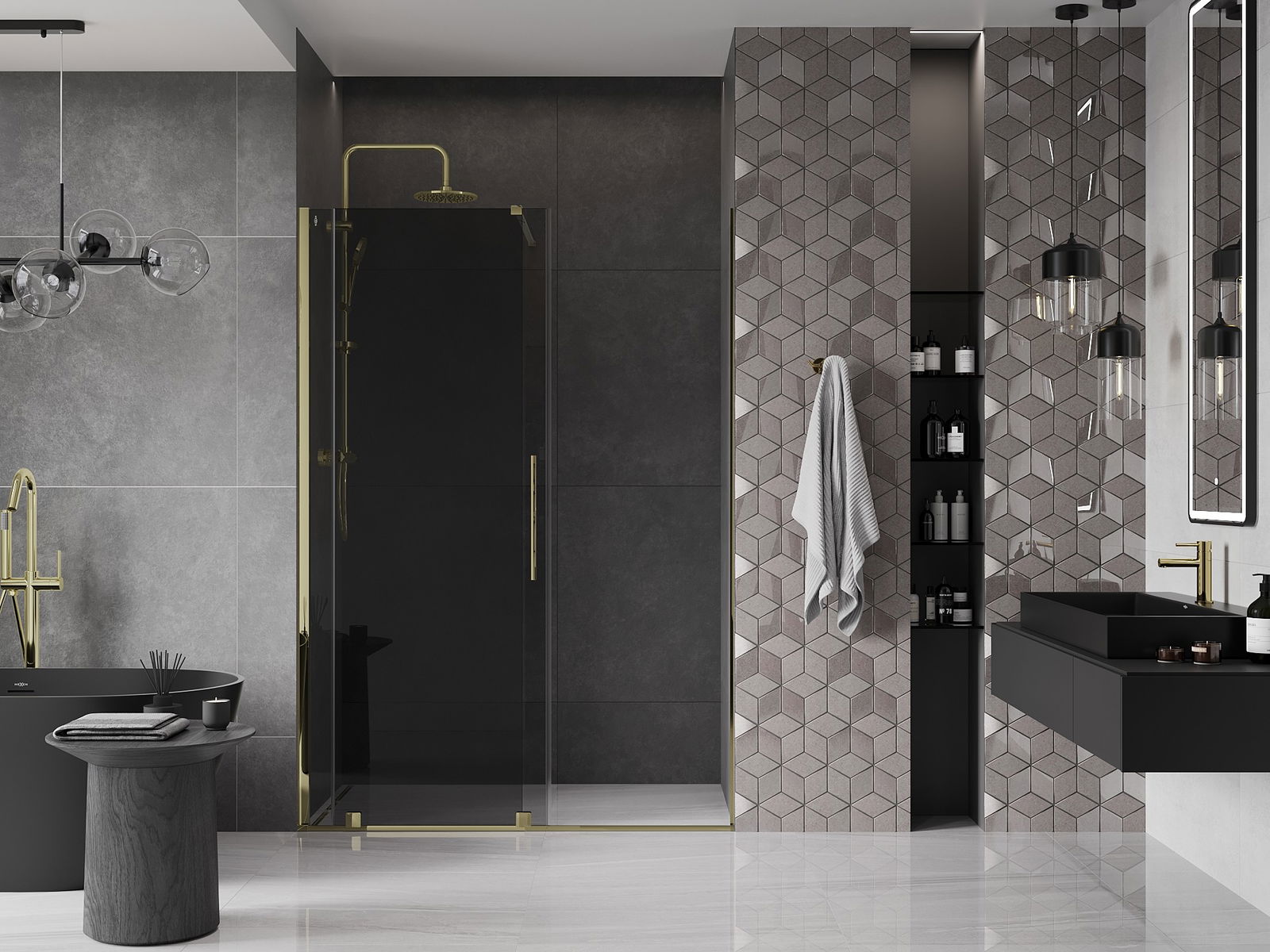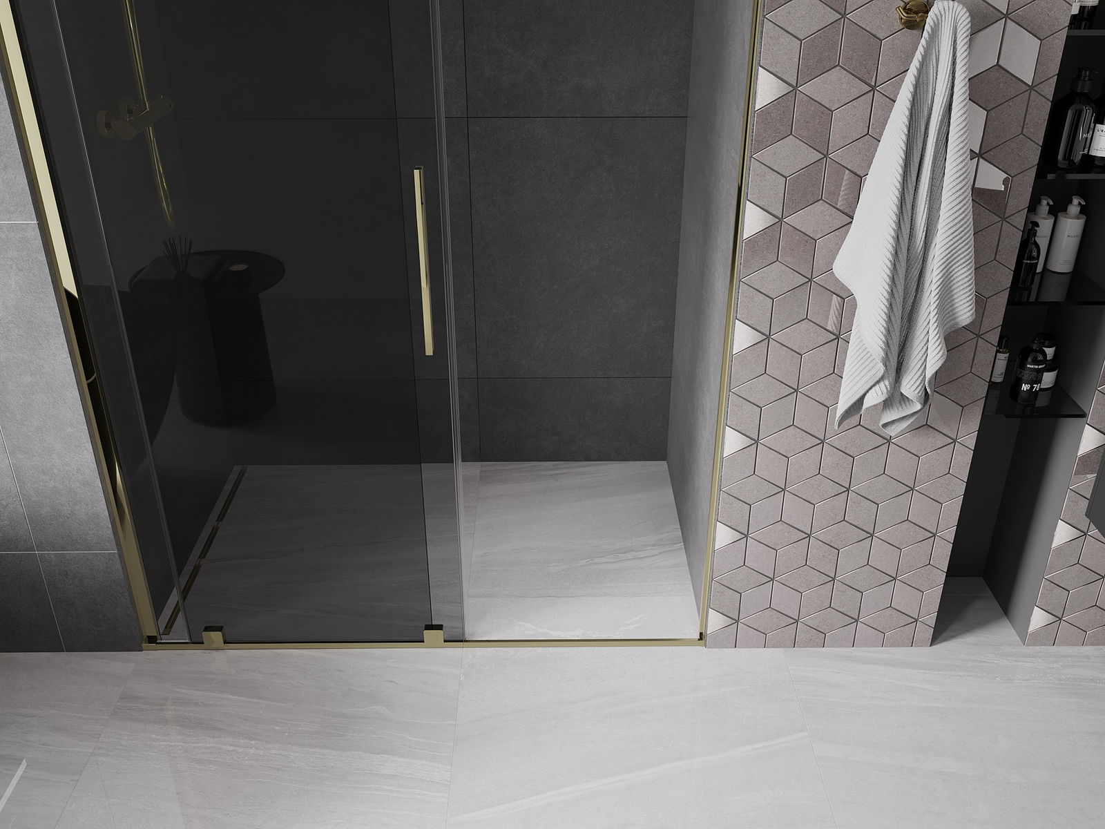 Mexen Velar drzwi prysznicowe rozsuwane 140 cm, grafit, złote - 871-140-000-41-50