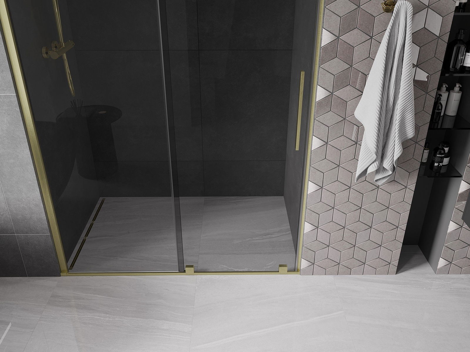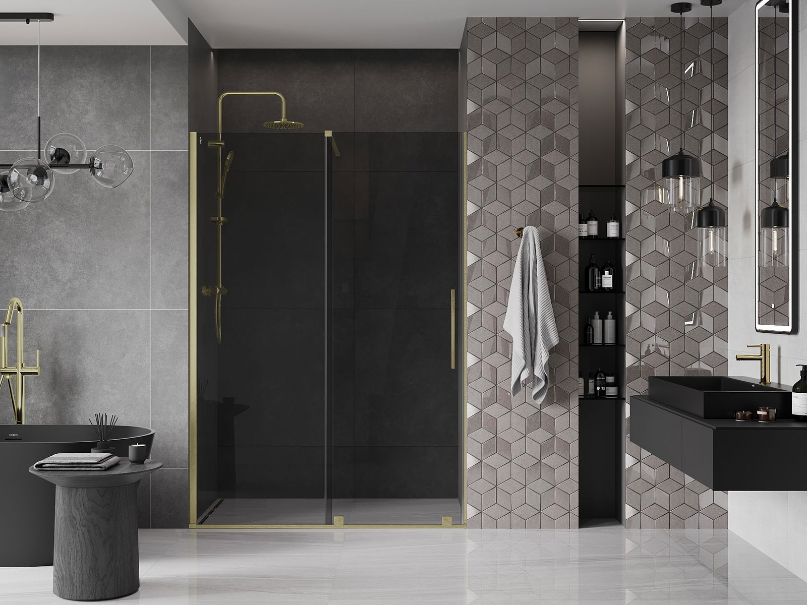 Mexen Velar drzwi prysznicowe rozsuwane 140 cm, grafit, złote szczotkowane - 871-140-000-41-55